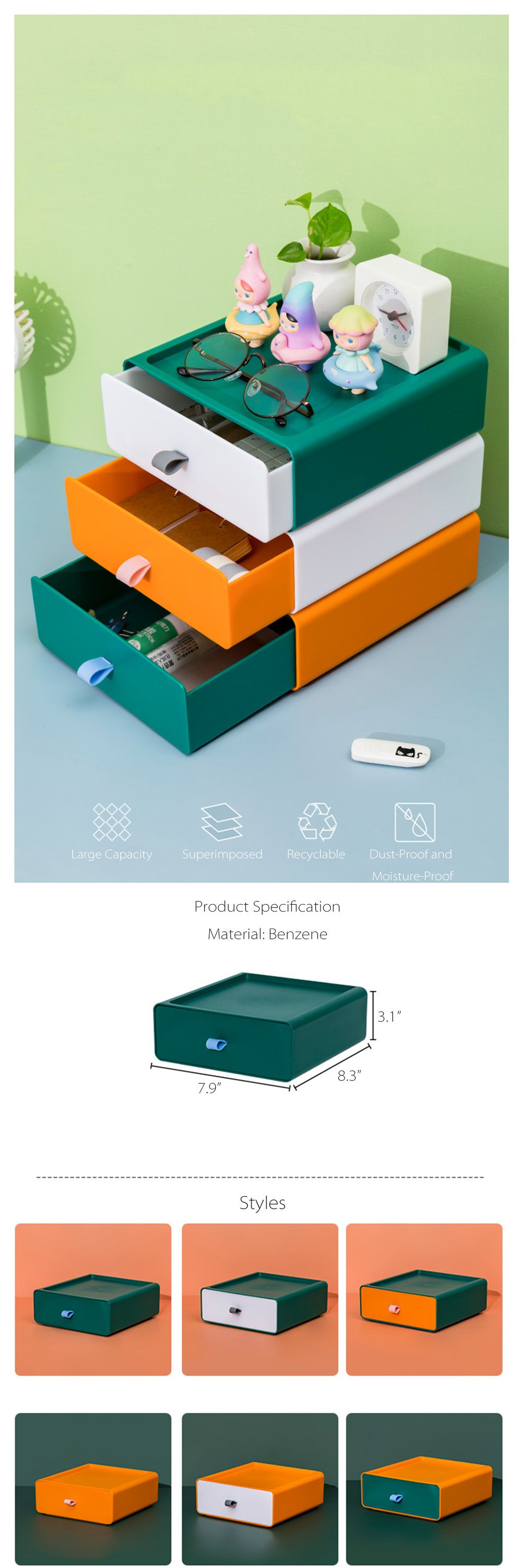 Large capacity drawer design, organize various items, including office supplies, toiletries, cosmetics, etc.