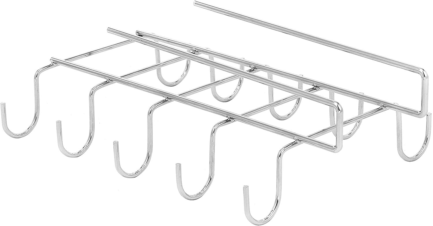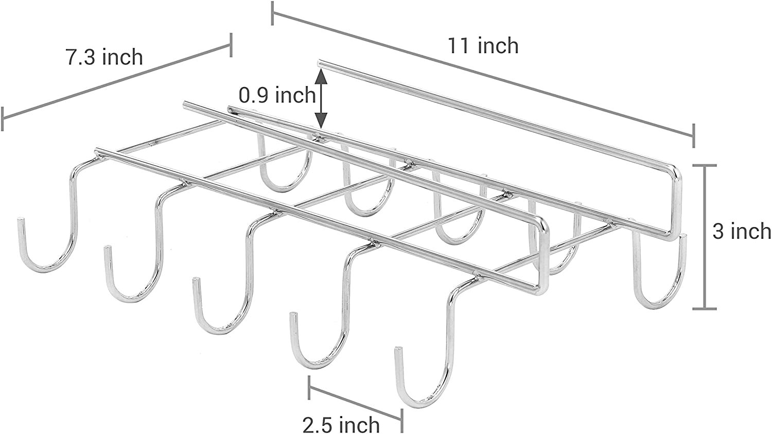 Metal under-the-shelf espresso or tea cup rack with 10 ball capped hooks.
