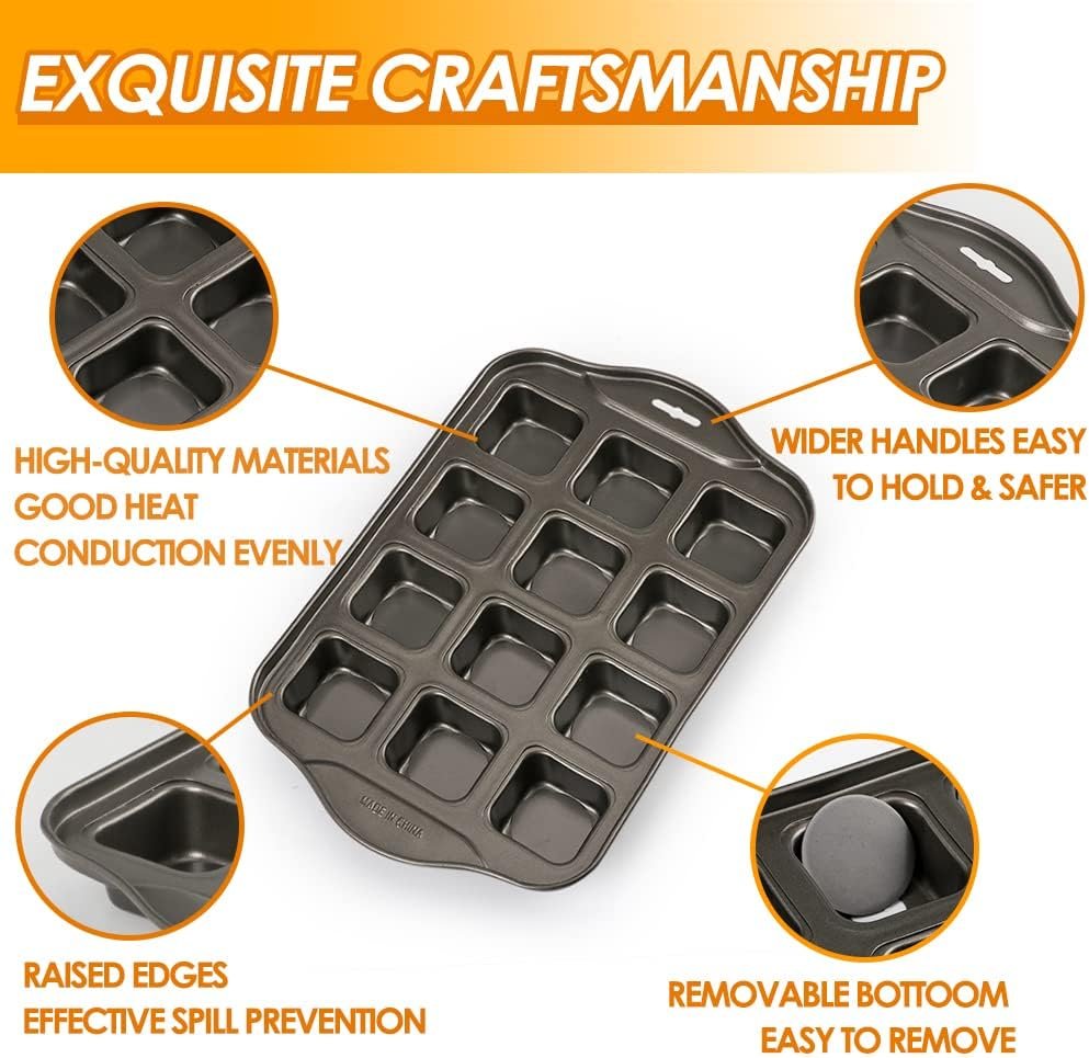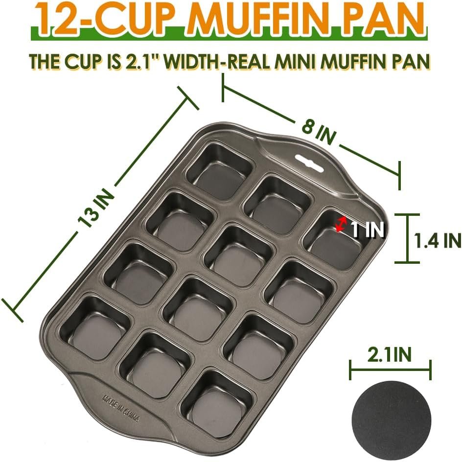 Premium Quality Square Cupcake Pan: Constructed of high quality carbon steel for even heating. Work perfectly to get the corner brownies with crusty edges. Sturdy and durable for daily use. Maintenance Instruction: Recommend hand wash in warm, soapy water before first and after each use. Dry it thoroughly after every wash. Dishwasher Safe. Oven-safe to 550 degrees F.