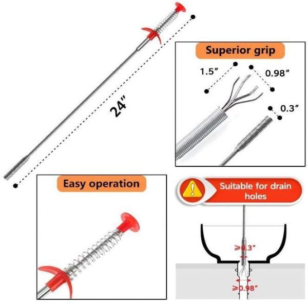 【Durable Quality Material】 Our drain clog remover is made of stainless steel and polypropylene. Galvanized spring pick up tool does not rust or break easily, suitable for long time use.