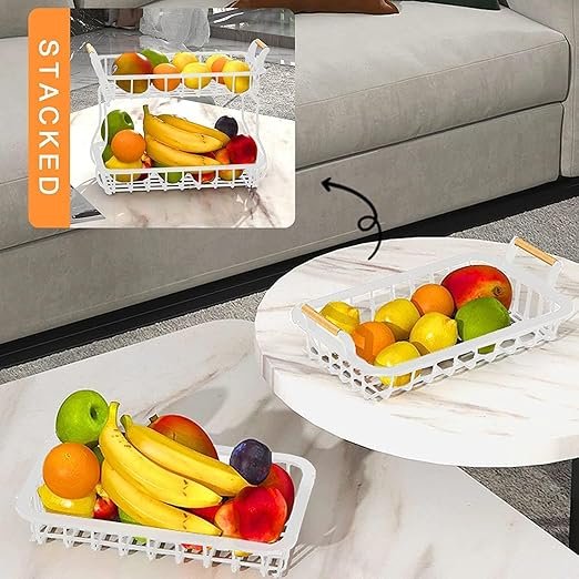 【2-Tier Design, Double the Space】This fruit basket adopts a 2-tier structure design, providing more storage space, easily classifying and storing fruits, vegetables, snacks, bread, potatoes, onions, etc, keeping the kitchen countertop neat and tidy. 【Sturdy and Durable, Easy to Clean】The fruit basket made of high-quality rust-proof iron mesh, it is sturdy and durable, not easy to rust, and the mesh design is ventilated and breathable, effectively extending the freshness of ingredients. 【Multifunctional Storage Rack】This iron wire basket can not only be used as a fruit basket, but also as a bread basket, snack basket, egg basket, produce basket, and more. 【Simple and Stylish Style】The fruit bowl has a simple and stylish appearance design, matched with high-quality materials. It is not only practical, but also be used as a decorative bowl in the kitchen. It is an ideal choice for your kitchen organizers and storage. 【Easy to Assemble and Disassemble】The 2 tier fruit basket is easy and quick to install, with a more reasonable design, no screws required for assembly. Can be disassembled and used for kitchen counter, it is an elegant space-saving storage solution.