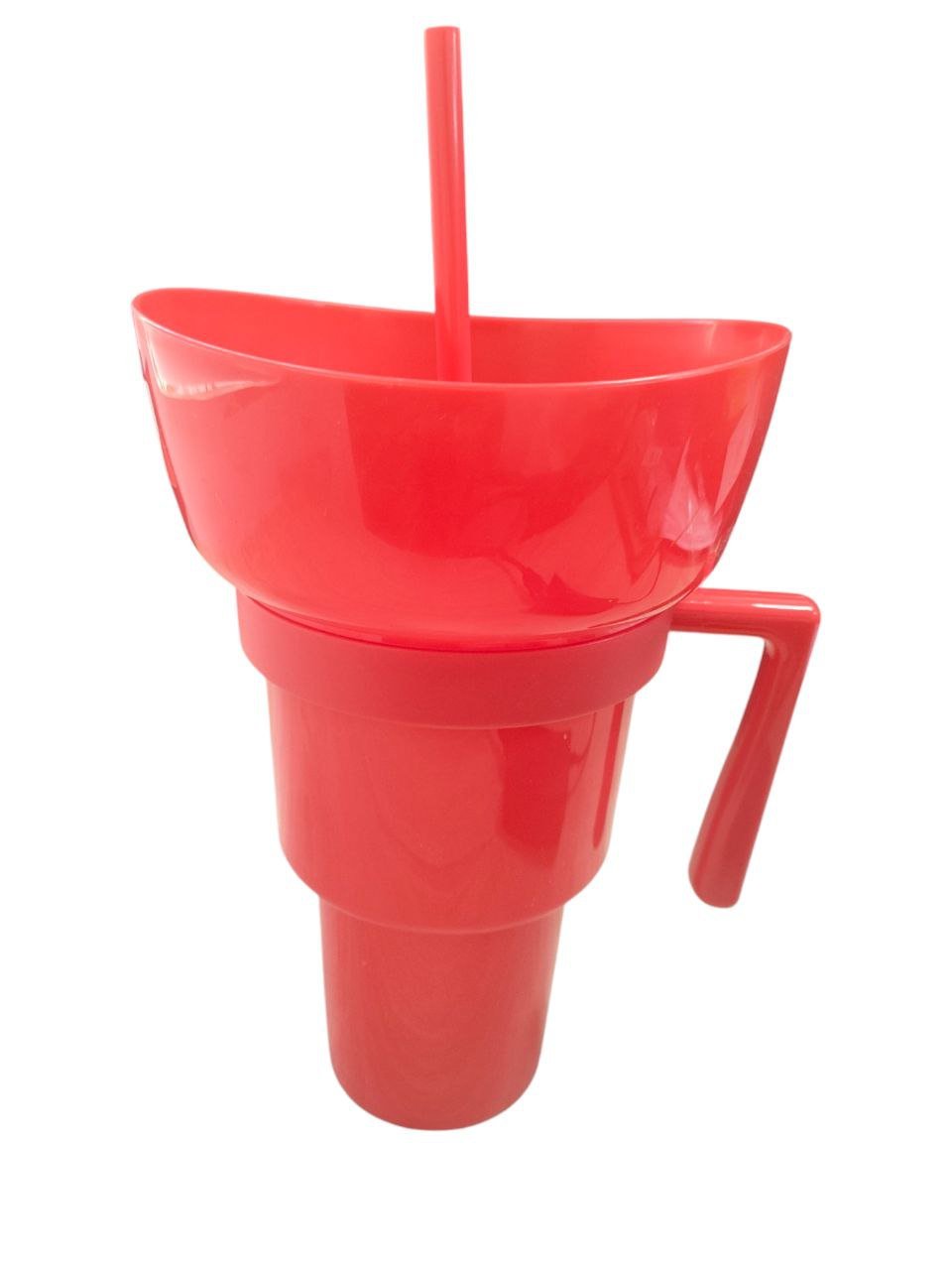 THE 2 IN 1 DESIGN Enjoy your favorite snacks and drinks on the go with this innovative popcorn water cup that combines a stadium cup and snack bowl with straw. Cinema Essentials Say goodbye to sharing popcorn bowls with our handy snack cups, perfect for movie nights at home or theatre. SPECIAL CUP DESIGN Experience hassle-free snacking and drinking with the splash proof and leak proof lid of this popcorn water cup. MULTIFUNCTIONAL This snack cup provides ample space for chips and more, allowing you to enjoy a variety of snacks in one container.