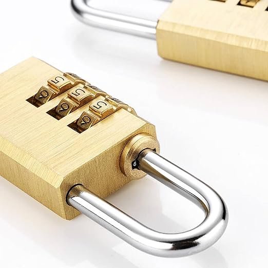 Elevate your security with the Brass Finish Padlock—a 3-Digit Combination Lock with Keyless Convenience, Durable Body .