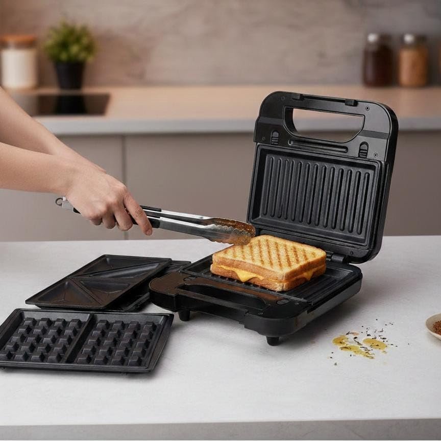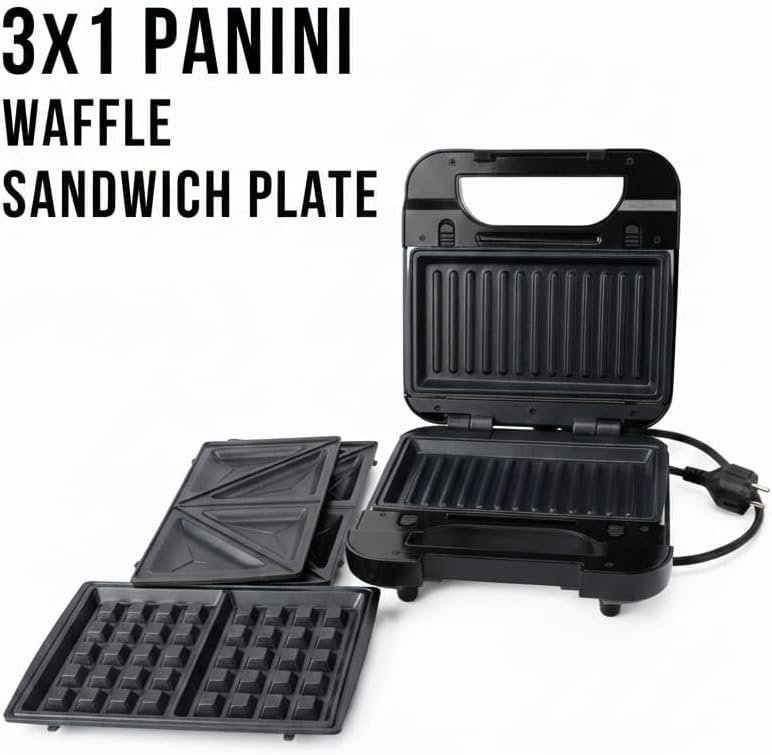 Upgrade your kitchen with this versatile 3-in-1 Sandwich Maker. Whether you're craving crispy waffles, golden toasted sandwiches, or grilled snacks, this appliance does it all. The easy-to-swap plates make transitioning between meals a breeze, while the sleek, modern finish fits perfectly on any countertop. Ideal for busy mornings and small apartments.