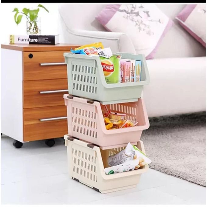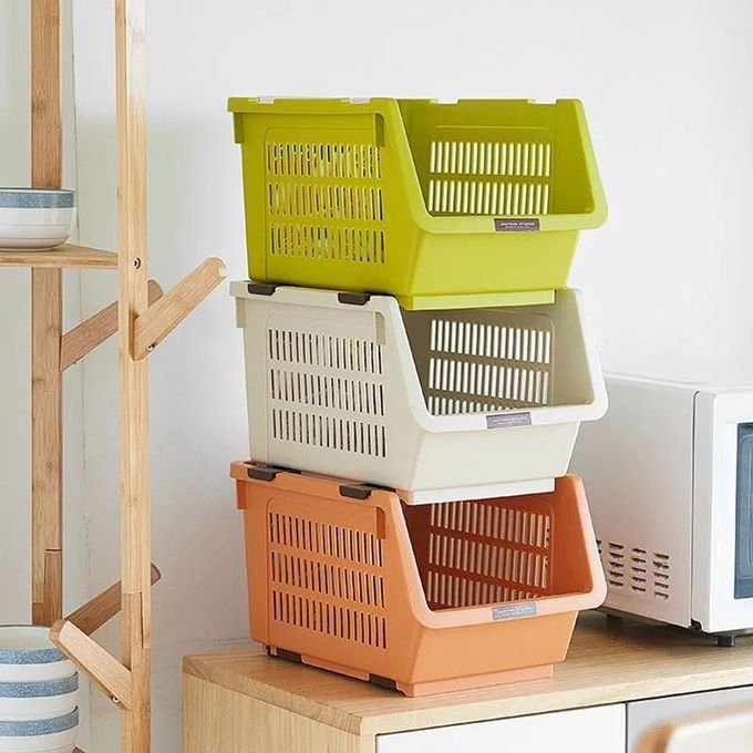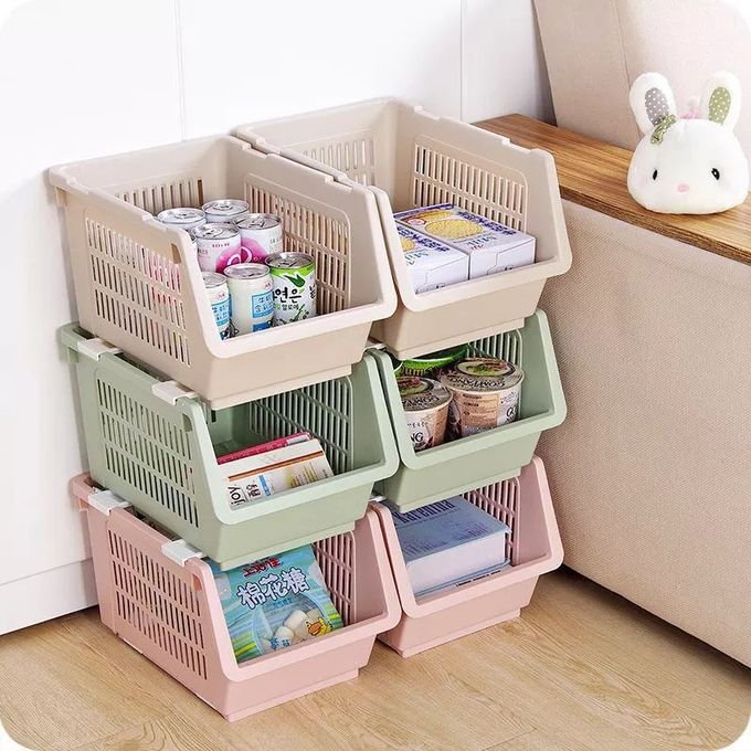 Material: The stackable basket is made of high quality PP. It is safe for food, durable and easy to clean. The smooth surface prevents hurting your hands and looks elegant in house.