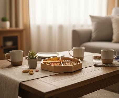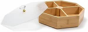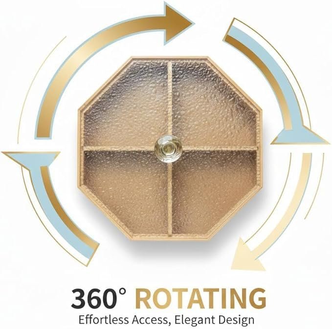 Elevate your hosting game and home organization with this premium 360° rotating octagonal snack box. Crafted from high-quality, sustainably sourced bamboo, this versatile server features four deep compartments designed to neatly separate variety snacks such as nuts, dried fruits, candies, and pretzels. The highlight of this piece is its stunning textured acrylic lid, which offers a frosted, crystalline aesthetic that obscures fingerprints while keeping contents fresh and protected. Topped with a sophisticated diamond-cut crystal knob and featuring a smooth-gliding internal rotation mechanism, this organizer transitions effortlessly from a cozy movie night companion to a centerpiece for formal gatherings. Its natural wood grain and minimalist geometric design ensure it complements any interior, from rustic farmhouse to sleek modern decor.