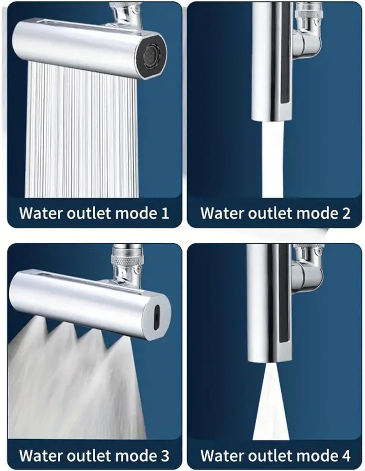 【3-Mode Outlet】1. Strong cleaning gear 2. Soft anti splash gear 3. Boosted shower gear like a waterfall flowing water 1080 Rotating Filter Faucet Aerator,The joint can be rotated freely, and multiple water outlet modes can be easily switched by pressing