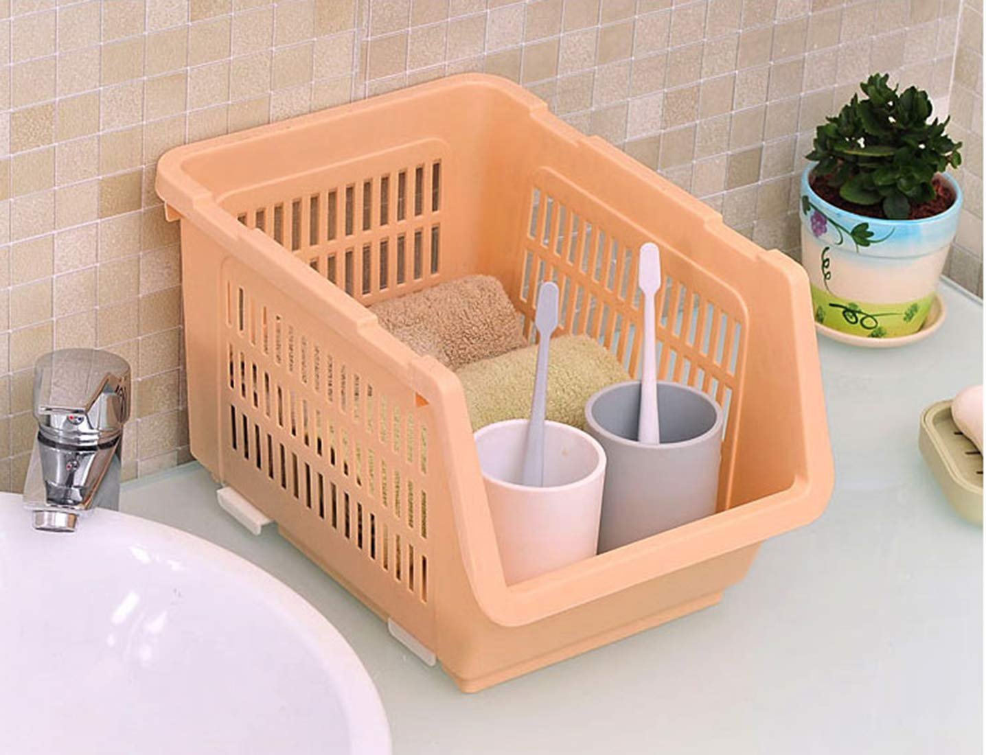 Material: The stackable basket is made of high quality PP. It is safe for food, durable and easy to clean. The smooth surface prevents hurting your hands and looks elegant in house.