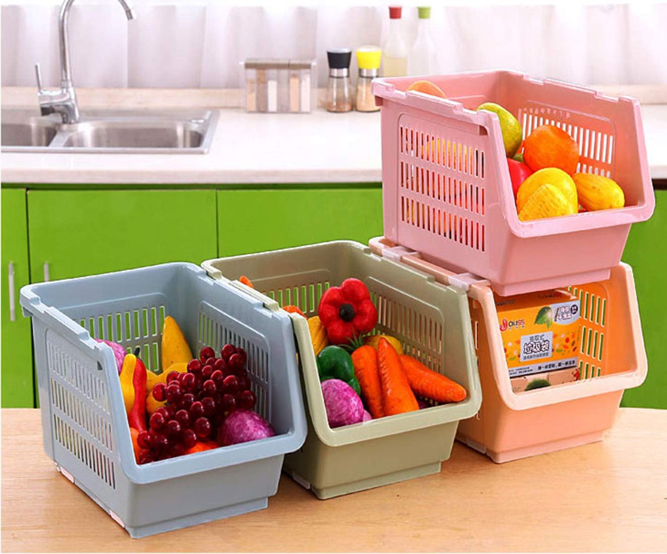Stackable storage basket: Our storage basket comes with the solid stretchable stands, and you can extend the stands then stack each basket. The stackable storage baskets can save space and keep the house tidy and clean. The hollow basket can keep the fruits and vegetables fresh and is perfect as an onions and potatoes storage bin.