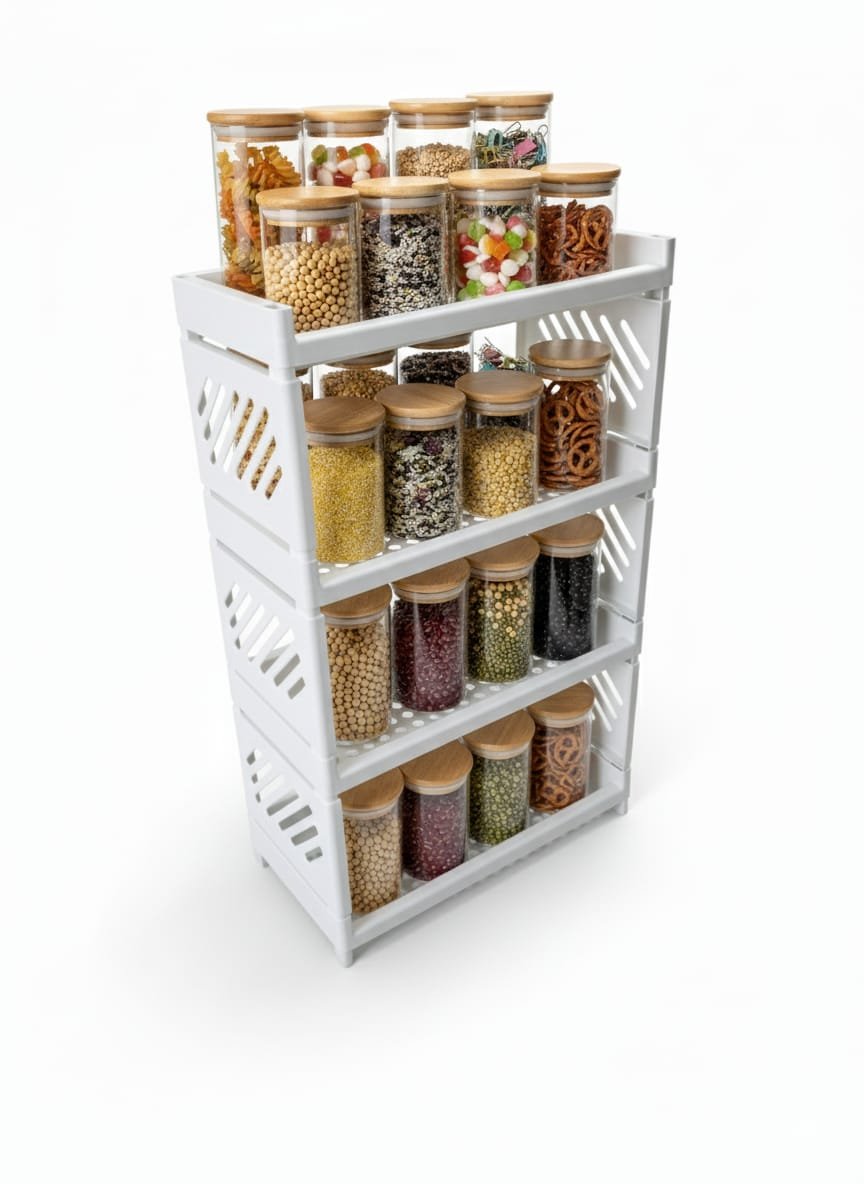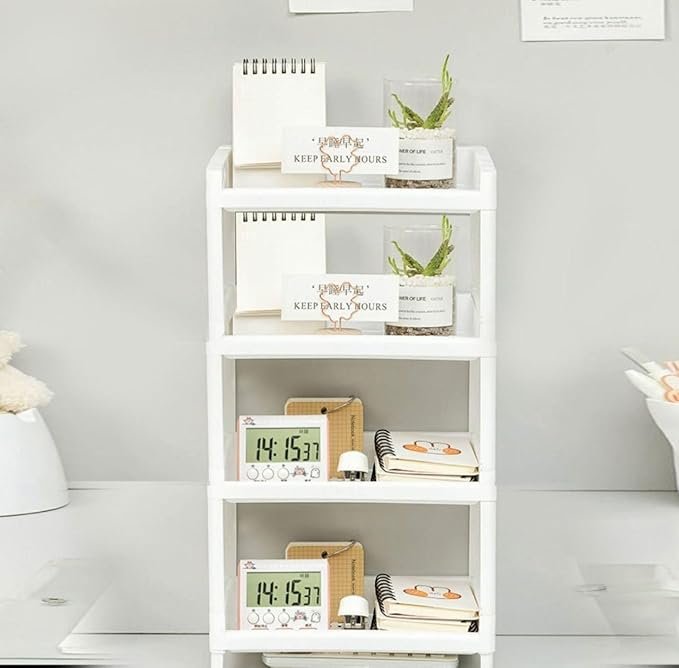 Introducing a versatile storage organizer shelf on tabletop, a must for any organized space. This Folding Shelf is designed to meet different needs, making it ideal for office and home use. With its sleek and compact design, it blends easily with any environment, providing a mess-free solution for storing stationery, spices, cosmetics and more.