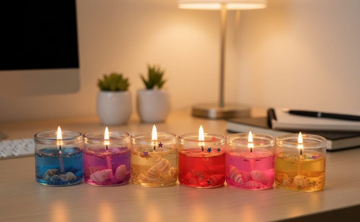 VERSATILE ACCESSORY COLORS: Available in bright and vivid colors that add temperament to any space you place CLEAN AND SAFE BURNING: Made with high quality gel wax that ensures a pure burn, no smoke . LONG LASTING LIGHTING: works for long hours, perfect for special occasions or relaxation. MULTI-USAGE: suitable for table decoration, living rooms, offices, even bathrooms. Environmentally friendly and safe: made of non-toxic materials, suitable for indoor use with children. PERFECT GIFT: Great choice as a stylish gift to your friends or family, especially on occasions.