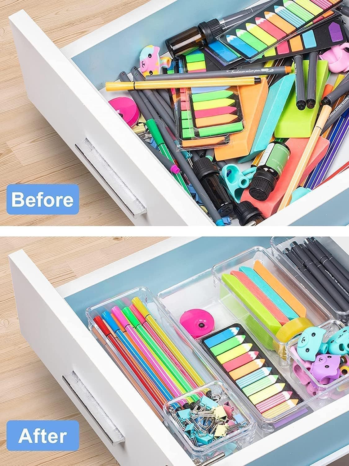 Drawer organizer:classified organization organize and keep your drawer or desktop tidy and neatDesk Drawer Dividers Drawer storage trays:cosmetics daily necessities tools medicine bottles can be easily storedSundries Storage Containers