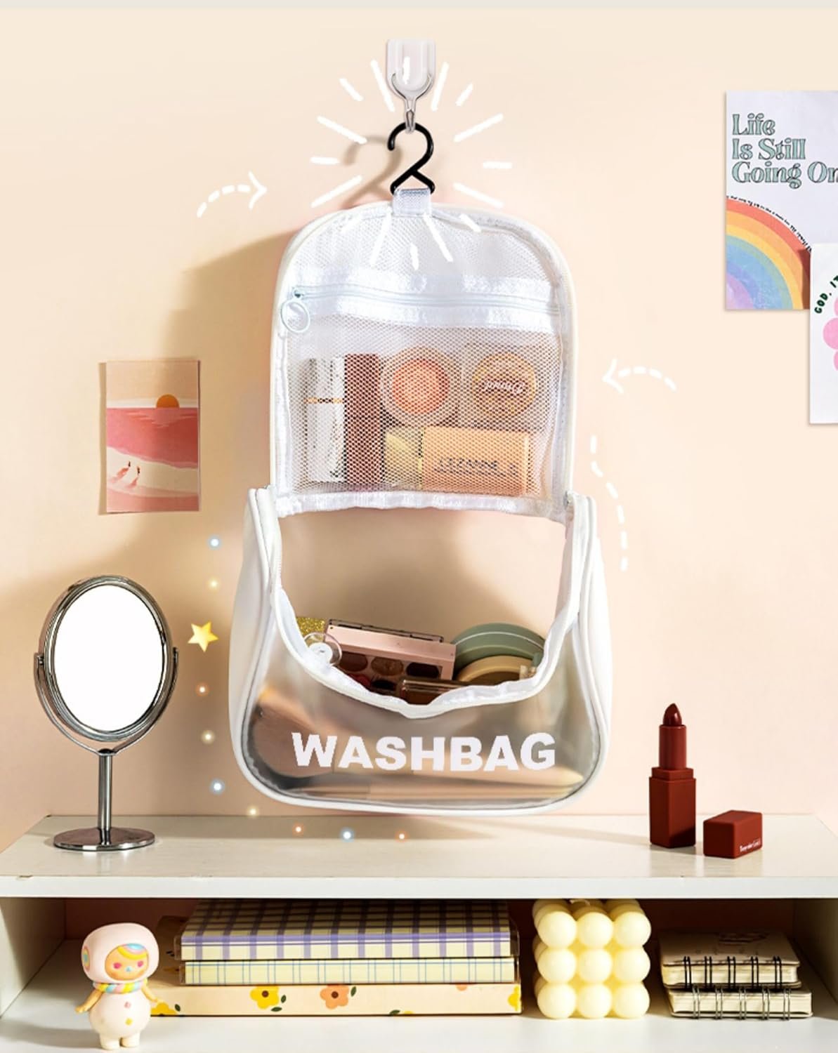 The versatility of this organizer allows it to store not only cosmetics but also medications, perfumes, stationery, and various small items, meeting the diverse needs of users. Whether you choose to use it as a cosmetic bag, travel wash bag, or general storage bag, it's a must-have for those who value convenience and organization in their daily lives or while traveling, ensuring you always have your essentials ready.