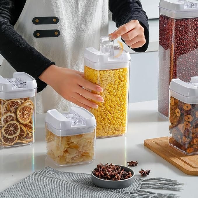 ✅ Durable Construction: Constructed from premium BPA-free plastic, ensuring durability and robustness for prolonged usage in the kitchen. The secure seal mechanism, featuring a user-friendly one-hand flip and seal ring handle, enhances safety compared to glass. This product is long-lasting, scratch-resistant, and provides glass-like clarity