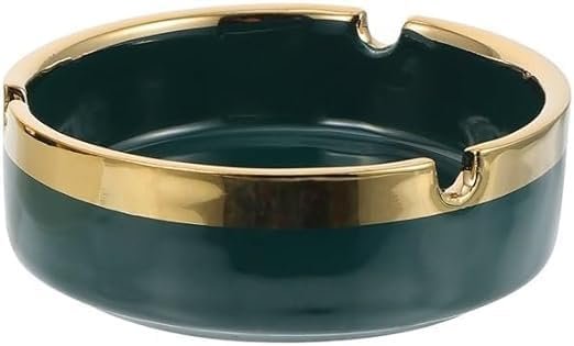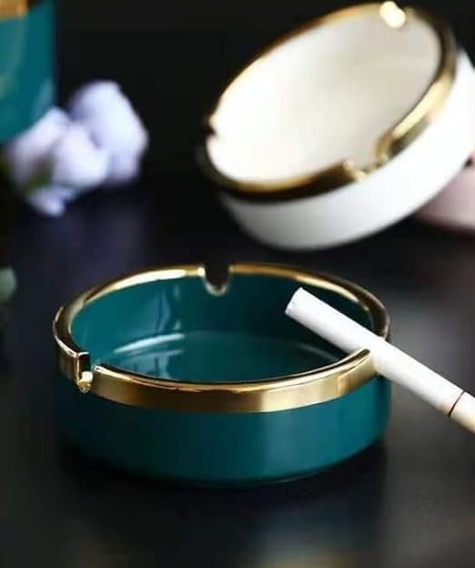 simple style that fits beautifully in a lot of locations including the home, office, hotel, café, and many more. Featuring classy hues and a gold edge that blend well with many décor pieces. The premium ceramic material used to make this ashtray is dependable and long-lasting.