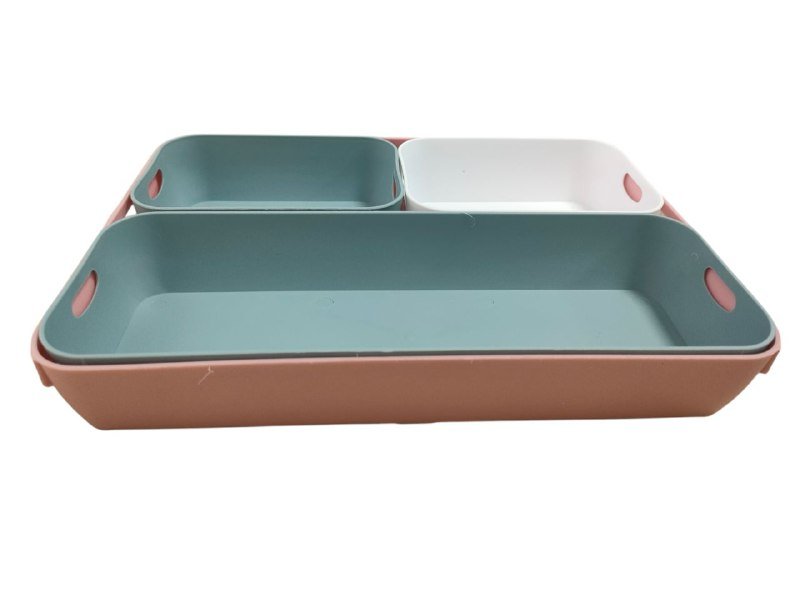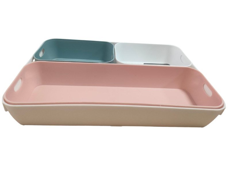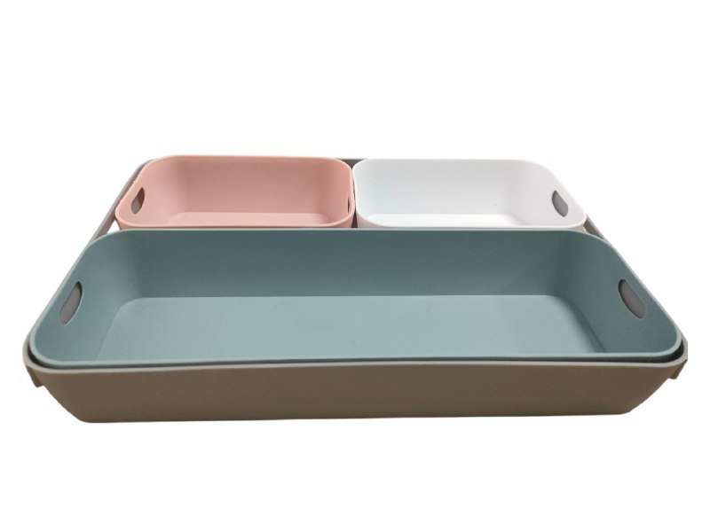 Colourful storage boxes for organising the drawer, cabinet and shelf, plastic organiser in different sizes. Do you want to create some order on your desk or in a drawer and are looking for matching storage boxes? The four boxes in different sizes are practical and versatile in the household. Practical set: The storage boxes in three different sizes ensure order on the desk, in the drawer or in the bathroom cabinet. FUNCTIONAL DESIGN: The desk organisers made of flexible and robust material can be arranged and used variably and can be stacked inside each other. Multifunctional: The drawer boxes can store office supplies, make-up, cosmetics, make-up accessories, cutlery, kitchen utensils or hygiene items. Space saving: When not in use, the coloured storage boxes can be stored in the cupboard, shelf or drawer thanks to the stacking function.