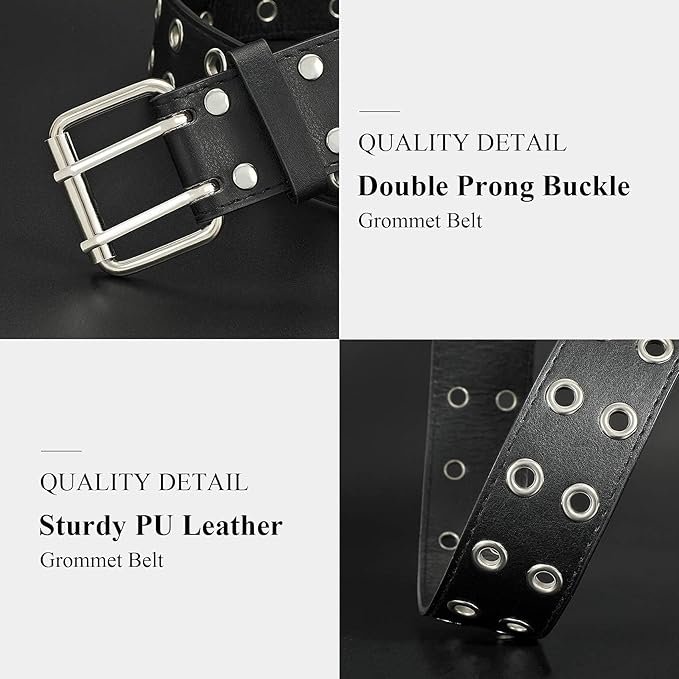 Punk Rock Dress Belts -- PU leather belt studded double eyelet, stylish but not exaggerated, Decorative jean belt for women&men for casual daily dress, party, club, skateboarding, dancing.For casual daily dress, party, club, skateboarding, dancing.