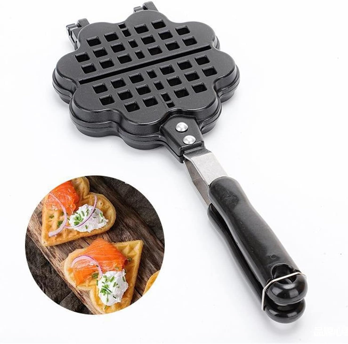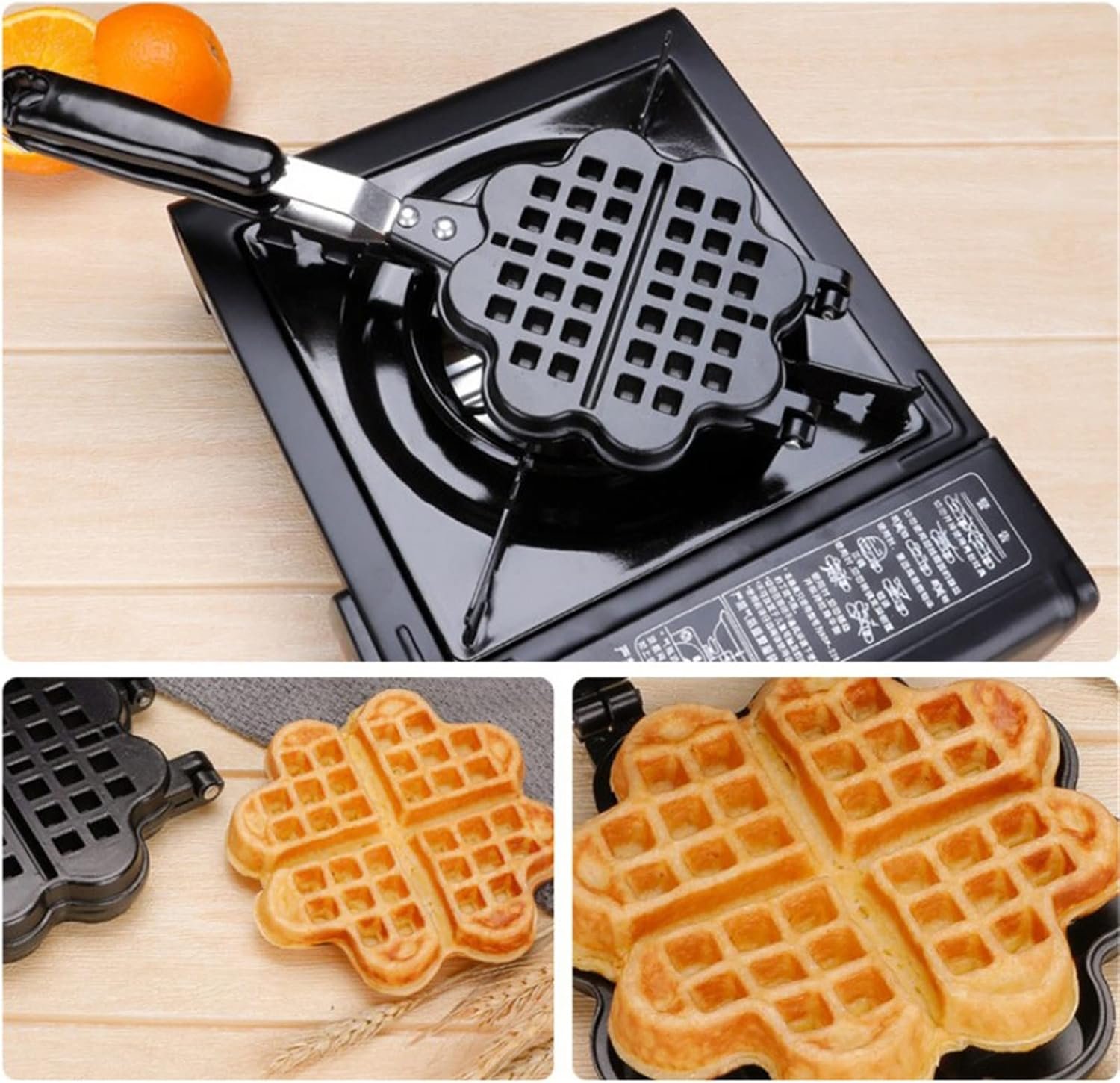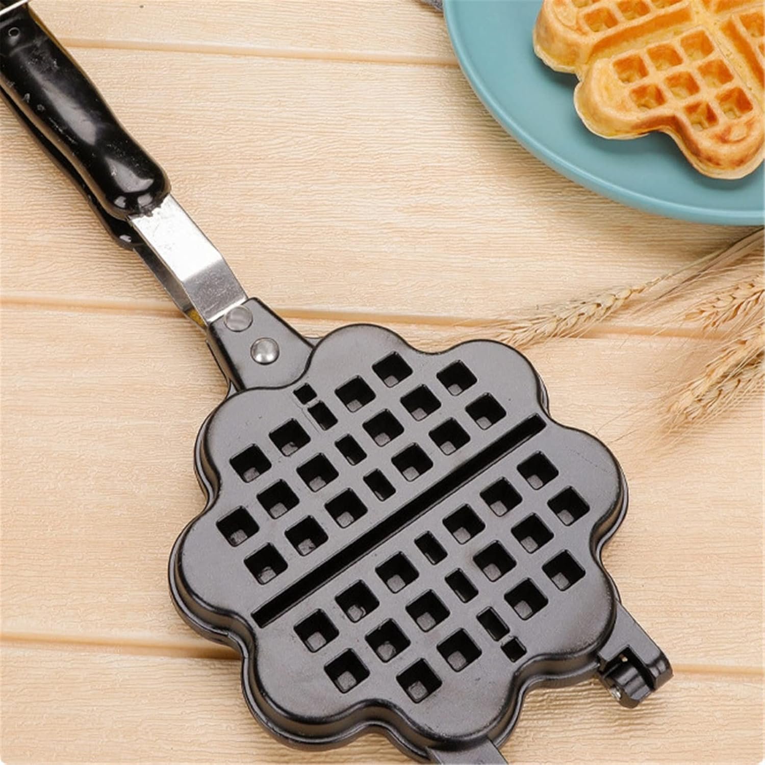 FOOD GRADE MATERIAL Crafted from high-quality aluminum for even heat distribution, our frying pan ensures there are no hot spots during cooking. NON STICK COATING The nonstick coating guarantees easy flipping of crepes, making food release and washing a breeze. DUAL HANDLE DESIGN Ergonomically designed handle with heat resistant treatment, compact structure, comfortable grip and labor saving operation. EASY TO STORAGE This waffle pan has hanging holes and safety buckles at the rear, which are attached with rivets for easy storage and save space in your kitchen. FLAT BASE PAN BODY The pan body adopt flat bottom designed with uniform heating, high heat transfer efficiency and stable performance, suitable for home and kitchen use.