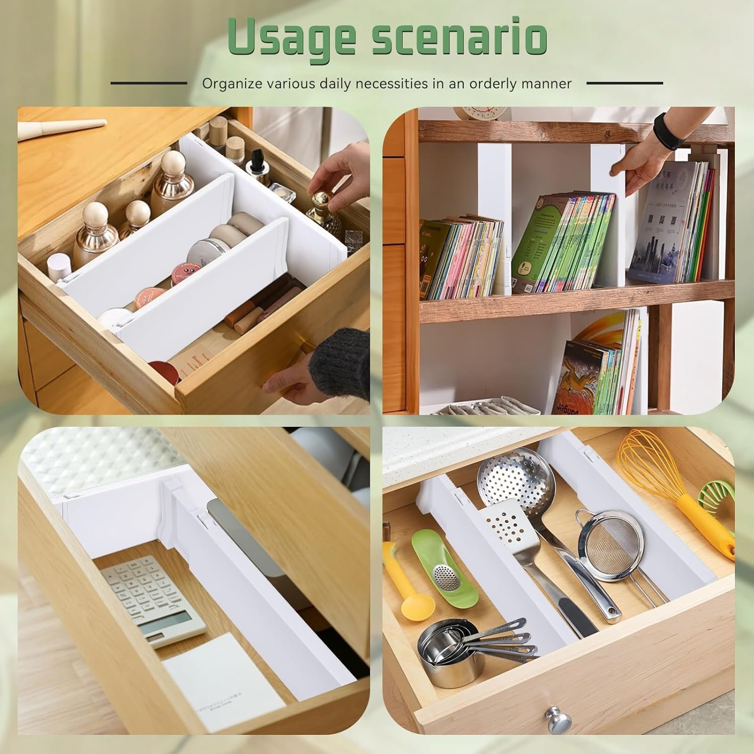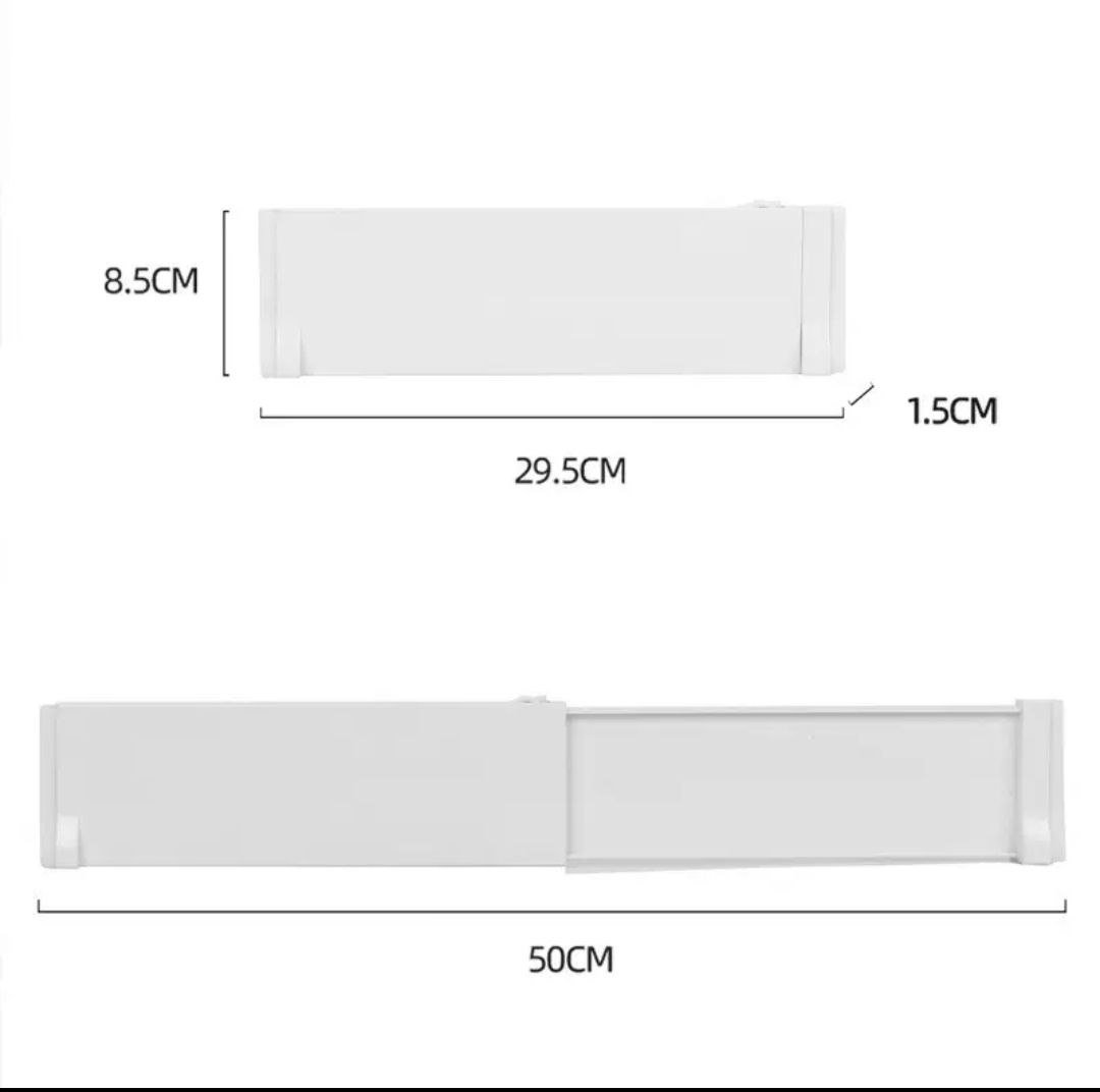 【Expandable & Adjustable Drawer Partition Board】With a width of 1.5cm, a height of 8.5cm, and an adjustable length of 29.5 to 50 cm, our drawer dividers can easily fit into most drawers and cabinets, you can adjust the length according to your drawer.