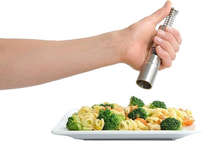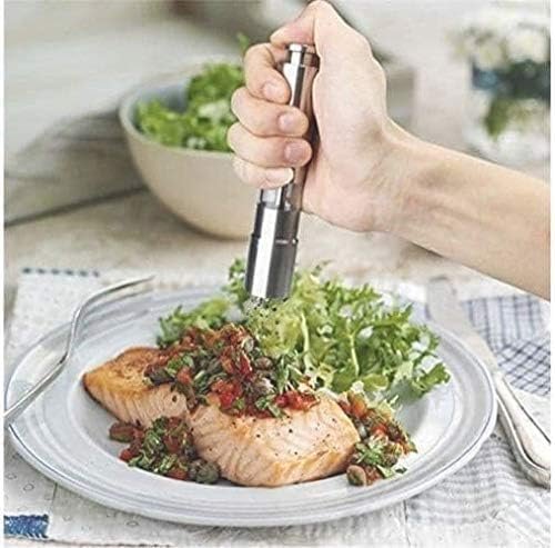 Thumb Press Grinder: Effortlessly grind peppercorns, sea salt, and Himalayan salts with the innovative thumb press design. Refillable Design: The transparent acrylic body lets you monitor salt and pepper levels, allowing for easy refills. Consistent Grind: The premium ceramic grinding mechanism ensures a consistent grind every time. Adjustable Coarseness: Customize the coarseness of your grind by simply twisting the knob at the bottom. Sleek and Modern: The stylish design complements any kitchen decor, making it a practical and attractive addition.