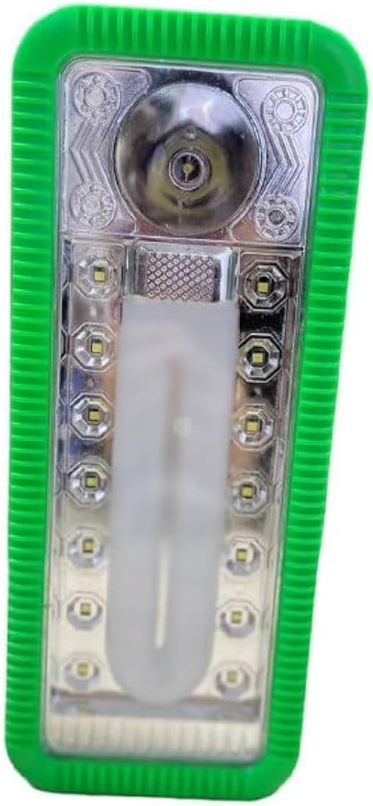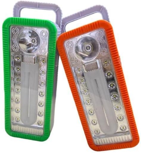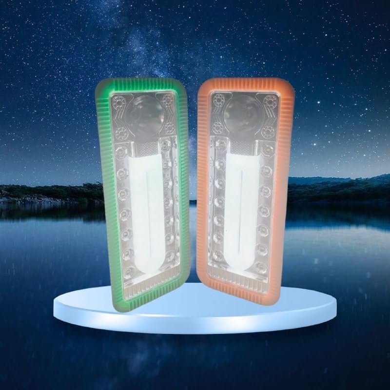 Emergency and camping lights, white color family. The emergency light is powered by a long-life, maintenance-free, high-capacity rechargeable lead acid battery
