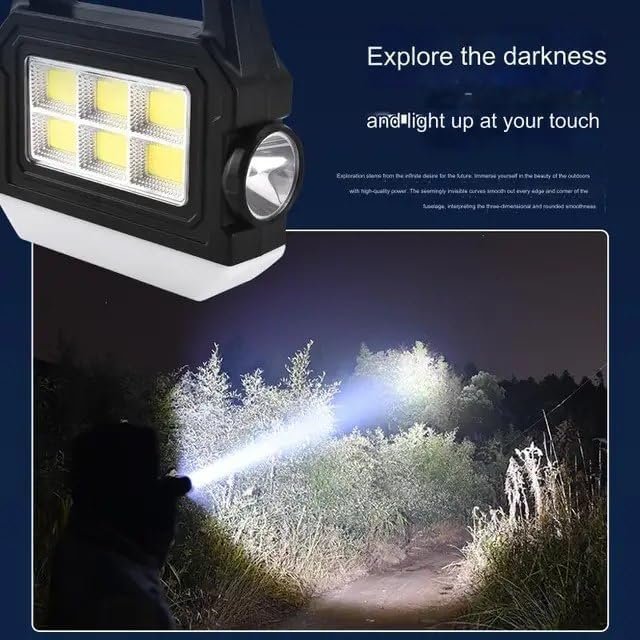 Multi Functional Solar Flashlight is a Light Weight and Water Proof. Searchlight has twin color of light White(LED) light. This torchlight can be charged with Solar panel as well as with electricity. It has USB charging facility, so in an emergency situation, you can charge your mobile also. It is made of very strong ABS Plastic material in case of slipping from hand or falling from the height, Flashlight has ability to absorb impact of 1 meter height. It takes only 2 to 3 hours for full charging the battery.