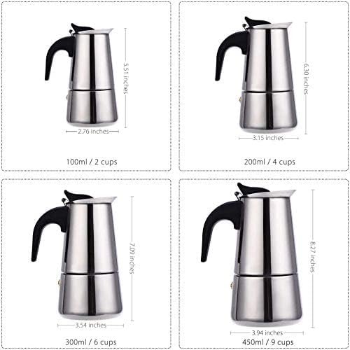 Espresso Coffee Maker, Stainless Steel Italian Espresso Coffee Maker for Gas Stovetop (2 cup)