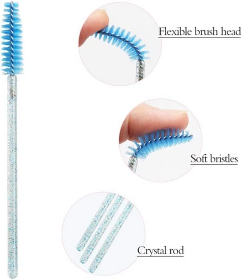 ★ Brush head could be bent slightly according to your requirement. The dense bristle brush is perfect to separate your eyelash and comb your eyebrow, ensure your lashes don't get clumped. ★ Disposable brushes can save your time and avoid cross-contamination. Can be carried easily to everywhere. ★ Bright color and crystal handle can bring you a good mood when you are using it to make up.