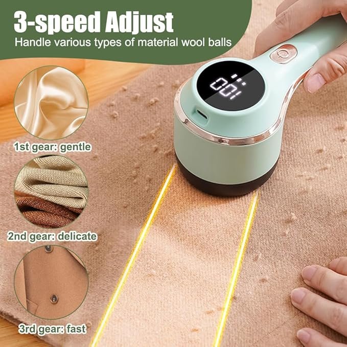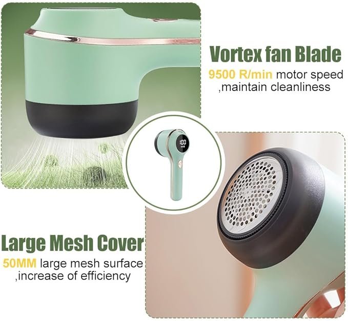 Feature highlights:This portable electric ball epilator features a six-blade stainless steel design for efficient sweater hairball removal without damaging clothes. Its compact and lightweight build, along with USB Type-C charging, ensures convenience for home or travel use. The large LED display provides clear battery and gear status, while the thickened steel construction offers durability.