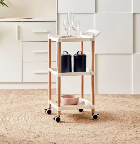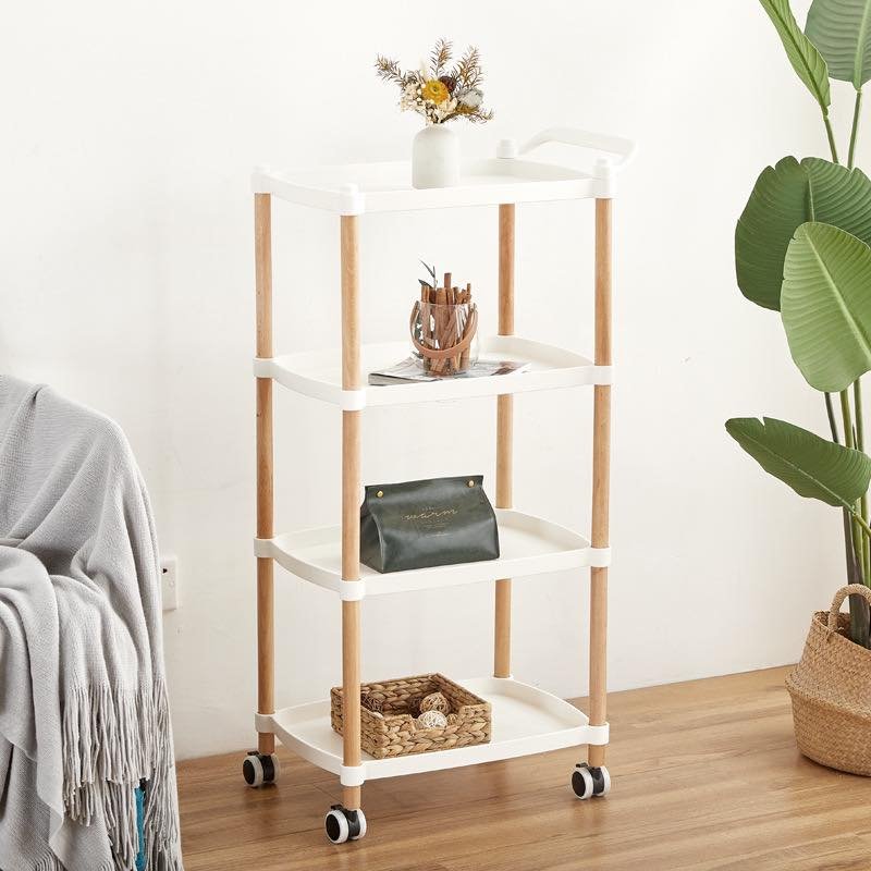 Modern Rolling Cart - If you're looking for a beautiful and practical rolling storage rack, our mobile serving cart is worth a try! You can easily use this cart as a storage cart, kitchen cart, craft cart, nursing cart, garage cart, and more. -Tier Storage Space - This storage cart features -tier plastic shelves and a sturdy wooden frame. Its compact size provides ample storage space for your kitchen, office, bathroom, bedroom, garage, utility room, craft room, pantry, closet, entryway, etc. Moving Wheels and Foot Pads - This kitchen cart with wheels can be moved 360 degrees, making your life more convenient. Home Serving Cart Organizer - The mobile kitchen cart comes with installation instructions and accessories, making it simple and easy to understand. It only takes ten minutes to assemble.