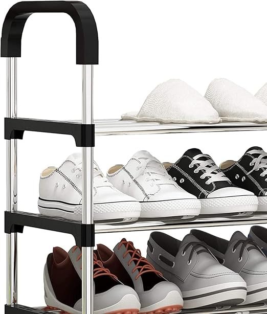 Practical Design: Offers 5tiers for storing shoes in an organized and tidy manner. Durable Structure: Made of a black plastic frame and strong metal rods to ensure stability and durability. Easy to Assemble: Can be easily put together and installed without the need for complex tools. Versatile: Suitable for entryways, bedrooms, or any place where you need to organize shoes. Lightweight: Easy to move and reposition anywhere.