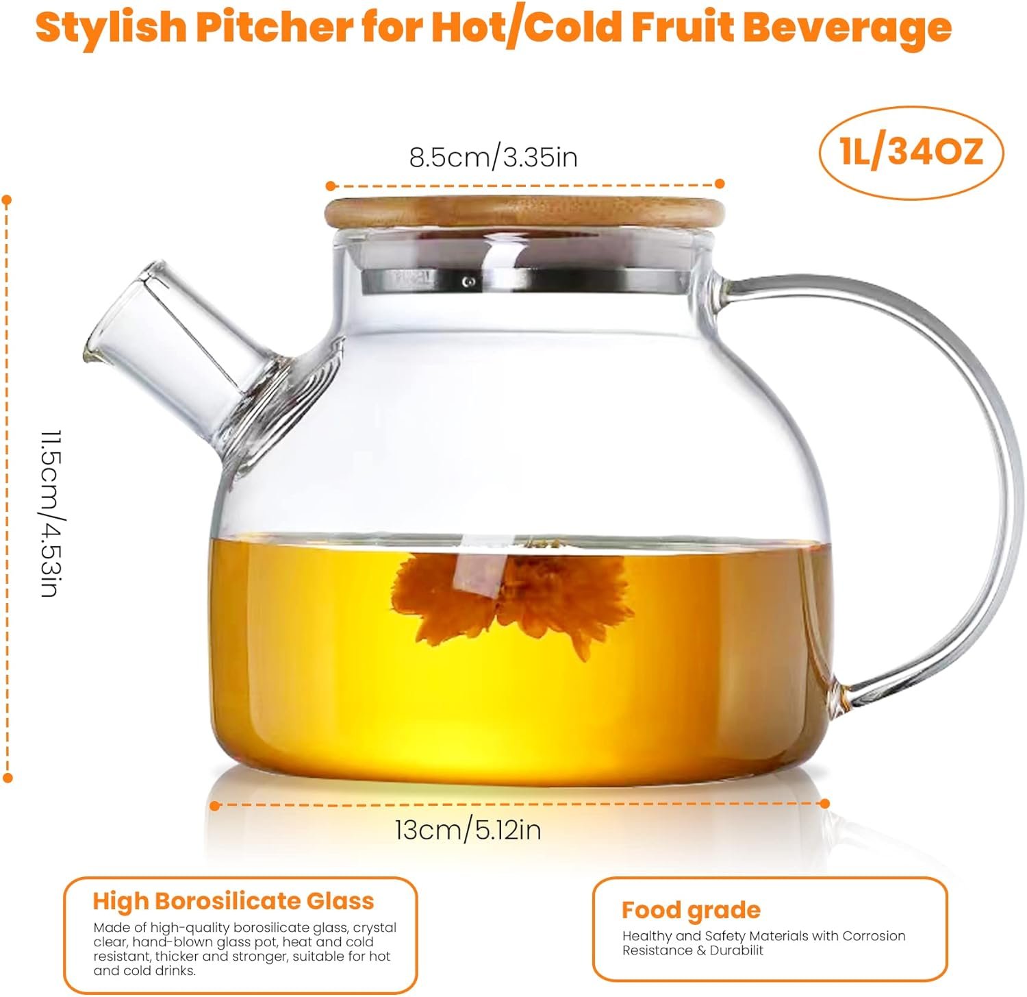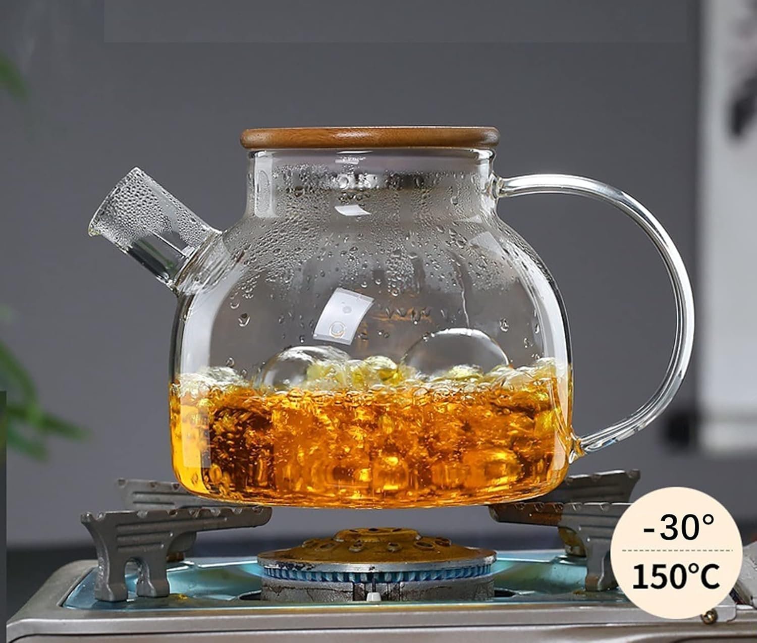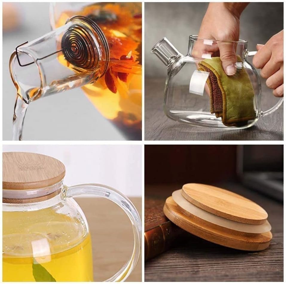 【Well Designed Glass Teapot】Comfortable handle and soft natural bamboo cover, firm grip, 100% leak-proof Therefore, you can easily use the teapot and the teapot won't overflow. Clean lines and ideal proportions of teapot blend seamlessly with any decor.
