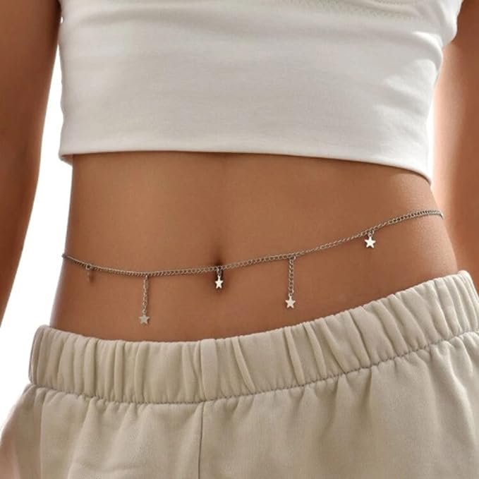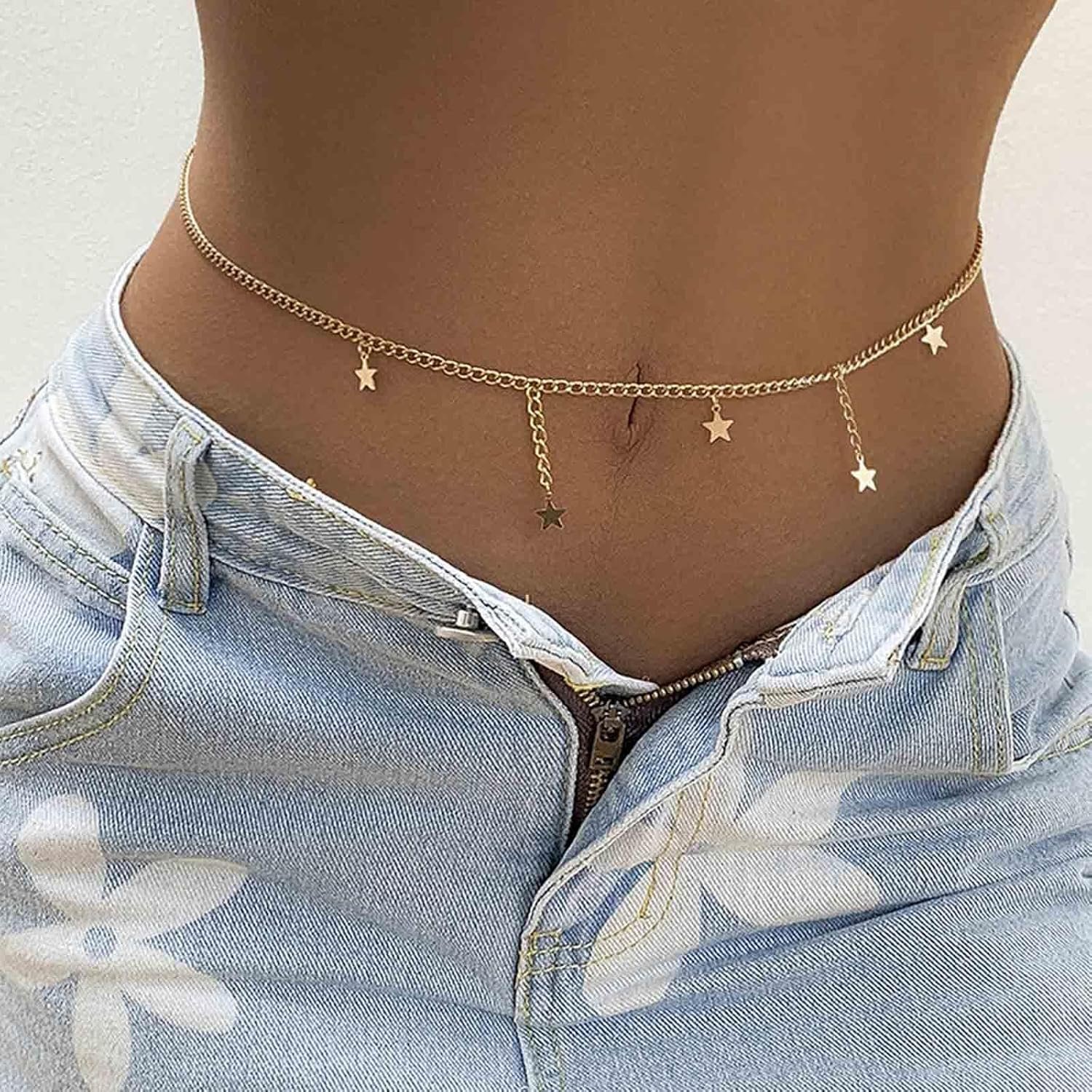 This elegant gold bikini chain enhances your figure. The body chain is made of high-quality alloy, plated with a shiny finish that won't fade easily, is hypoallergenic, and won't irritate your skin. The beach bikini belly chain, as shown in the pictures, has a lobster clasp on the back, is adjustable and easy to wear, and is suitable for most women and girls. The summer star waist chain can be paired with bikinis, evening dresses, and more, or given to your friends as a beautiful gift.