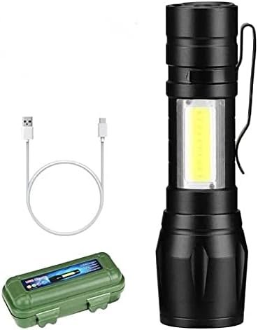 Quality Material:Made of aircraft-grade aluminum alloy to ensure durability, this USB rechargeable flashlight is specially developed for rough handling and can withstand drops. This high power light works even after freezing and submerging underwater and is driven by a full-size truck. This flashlight is waterproof, perfect for use in rain and snow, never afraid of harsh conditions. HIGH BRIGHTNESS & LONG RANGE:This USB rechargeable lamp is equipped with a high power LED filament that provides long-lasting high light and high brightness. The flashlight has a telescopic function, you can push/pull the head to adjust the focus according to your needs, and flood light for long range and range. There are 3 modes: strobe light/strobe/cuban side light. Strobe is usually used for emergency assistance when you get lost or need outdoor help. It is perfect for hiking, camping, fishing, walking in the dark, emergency or other outdoor activities. EASY TO CARRY:This light comes with a portable pen clip for easy carrying and is small enough to fit in a pocket, handbag, drawer or car compartment. USB Rechargeable Flashlight Takes 3 Hours Best Gift:This flashlight can be given as a Halloween, Christmas and birthday gift to your family and friends, they will be happy to receive this gift. You can also keep it at home as a backup, this flashlight is the best little helper in life