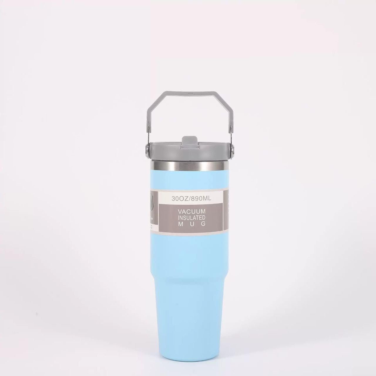 【Excellent Function】Relax and enjoy every sip of your favorite beverage. This 30oz Tumbler with Straw Lid features extra inner walls and vacuum insulation to keep your drinks hot for 8 hours and cold for 12 hours.Perfect for hot or iced coffee, tea, cold water, juice, wine, beer, milkshake, or a smoothie. 【Easy to Carry】The 30oz Stainless Steel Coffee Travel Insulated Cup Mug can be easily placed in the car cup holder, and the one-handle design allows you to easily take out the mug and drink. The Thermal Mug is 9.8in high, 3.5in wide. The wide opening design makes cleaning more convenient and easier. Large capacity thermal mug is suitable for swimming, sports, travel, road trips, BBQ, camping, parties and more. 【High Quality Material】The travel mug is made of high quality 304 stainless steel, high hardness,strong resistant to pressure,which is strong and durable, rust-proof, heat-retaining and easy to clean. The lid is designed with drinking holes for placing straws or drinking directly.