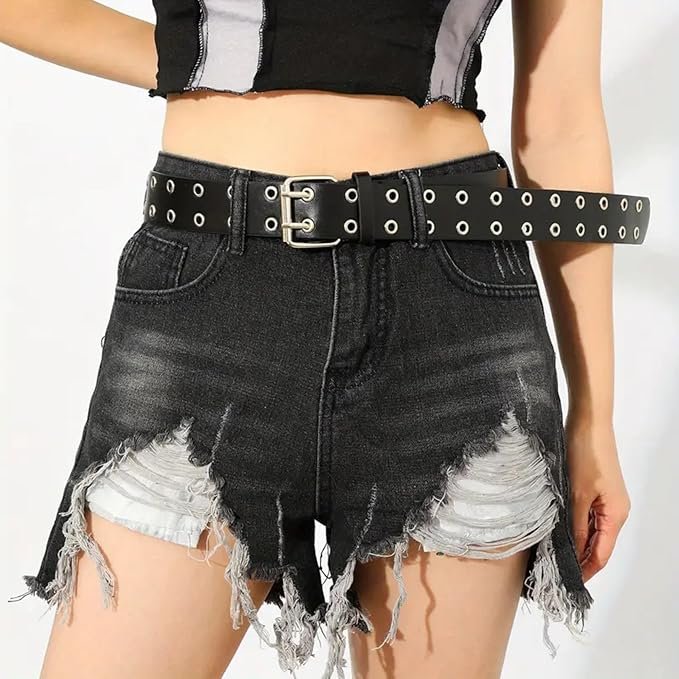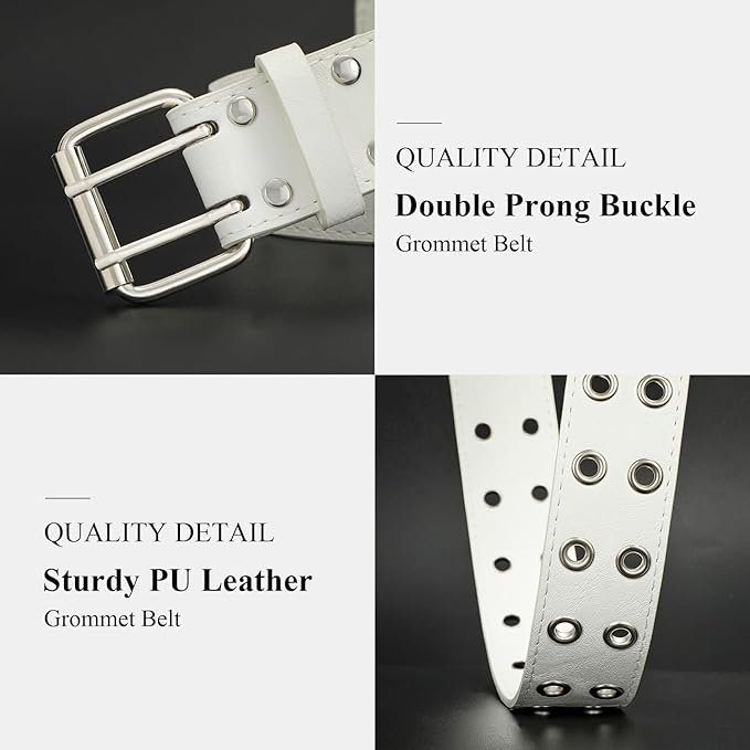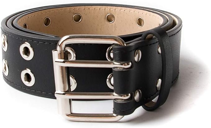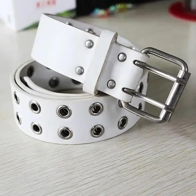 Punk Rock Dress Belts -- PU leather belt studded double eyelet, stylish but not exaggerated, Decorative jean belt for women&men for casual daily dress, party, club, skateboarding, dancing.For casual daily dress, party, club, skateboarding, dancing.