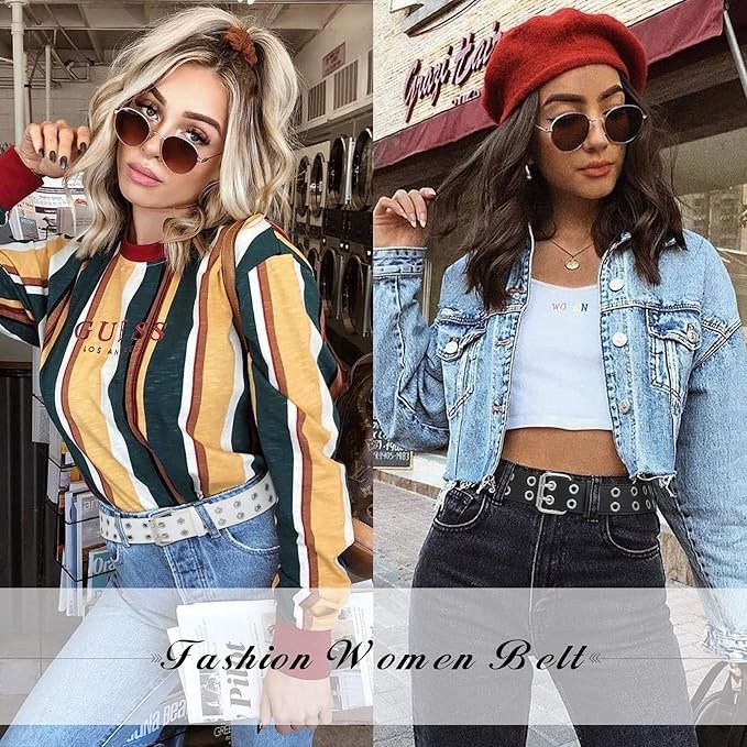 PU Leather Belt for Jeans --Superior quality artificial leather belt with solid prong buckle, fake leather belt strong , sturdy and durable, fashion leather accessory high light your outfit. Stylish Present Belts -- A perfect waist accessory to match punk suits. Sharing it to your friends, band/club members, dancers, rockers.