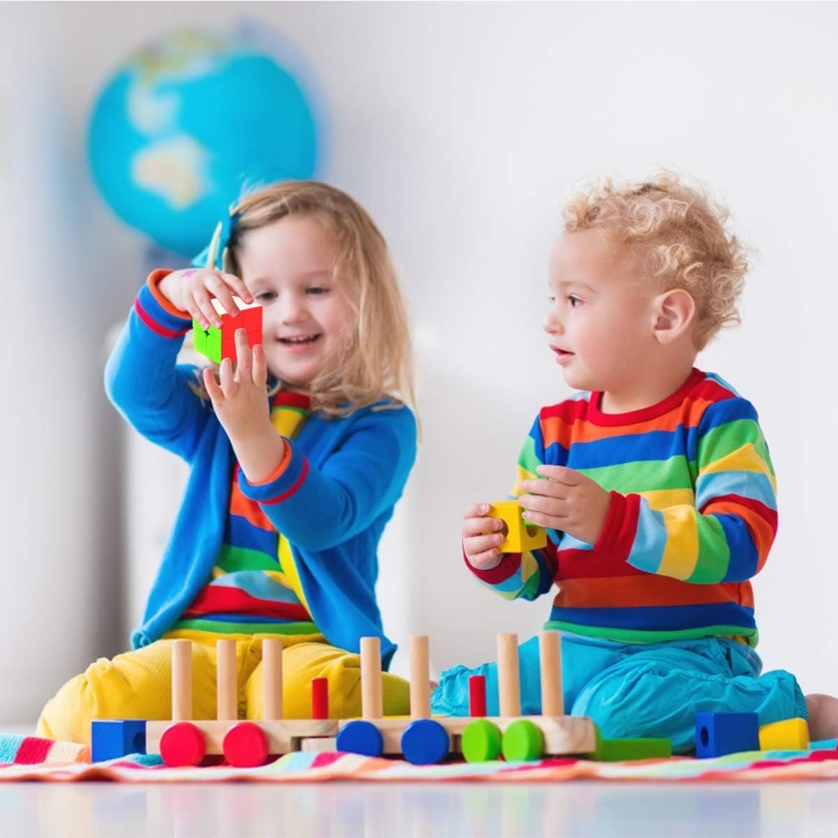 magic cube smooth fast twist for Competition with a stand. ** WELL MADE: Size is 55.5x55.5x55.5mm, weight about 73g. It is made of high-quality ABS plastic, durable, PVC stickers, good hand feeling. ** ALL NEW ANTI-POP DESIGN: Large fillet design, the internal use of a new steel card slot, can effectively prevent the steel ball out