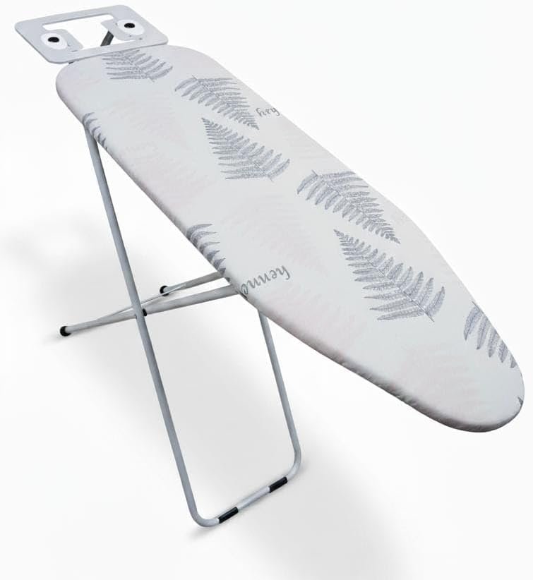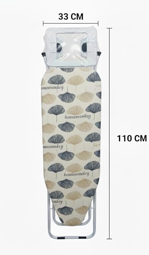 Upgrade Your Ironing Experience with This Modern, Compact Board! Tired of flimsy ironing boards that wobble and take up too much room? Introducing the smartly designed and stylish Foldable Ironing Board. With its practical dimensions of 110x33 cm, it provides the broad surface you need to finish your ironing tasks quickly and effectively. Why Choose Our Ironing Board? Built to Last: Constructed from high-quality materials with a solid metal base, designed for longevity and to withstand years of regular use. Aesthetic Appeal: The cover's appealing leaf print in neutral tones adds a decorative touch, making this board one you won't mind keeping out! Effortless Portability: The quick-fold feature allows you to carry and move it with ease, simplifying the process of setting up and packing away. Versatile Use: Suitable for all garment types and fabrics—from delicate silks to heavy cottons—its smooth surface ensures flawless, wrinkle-free results every time.