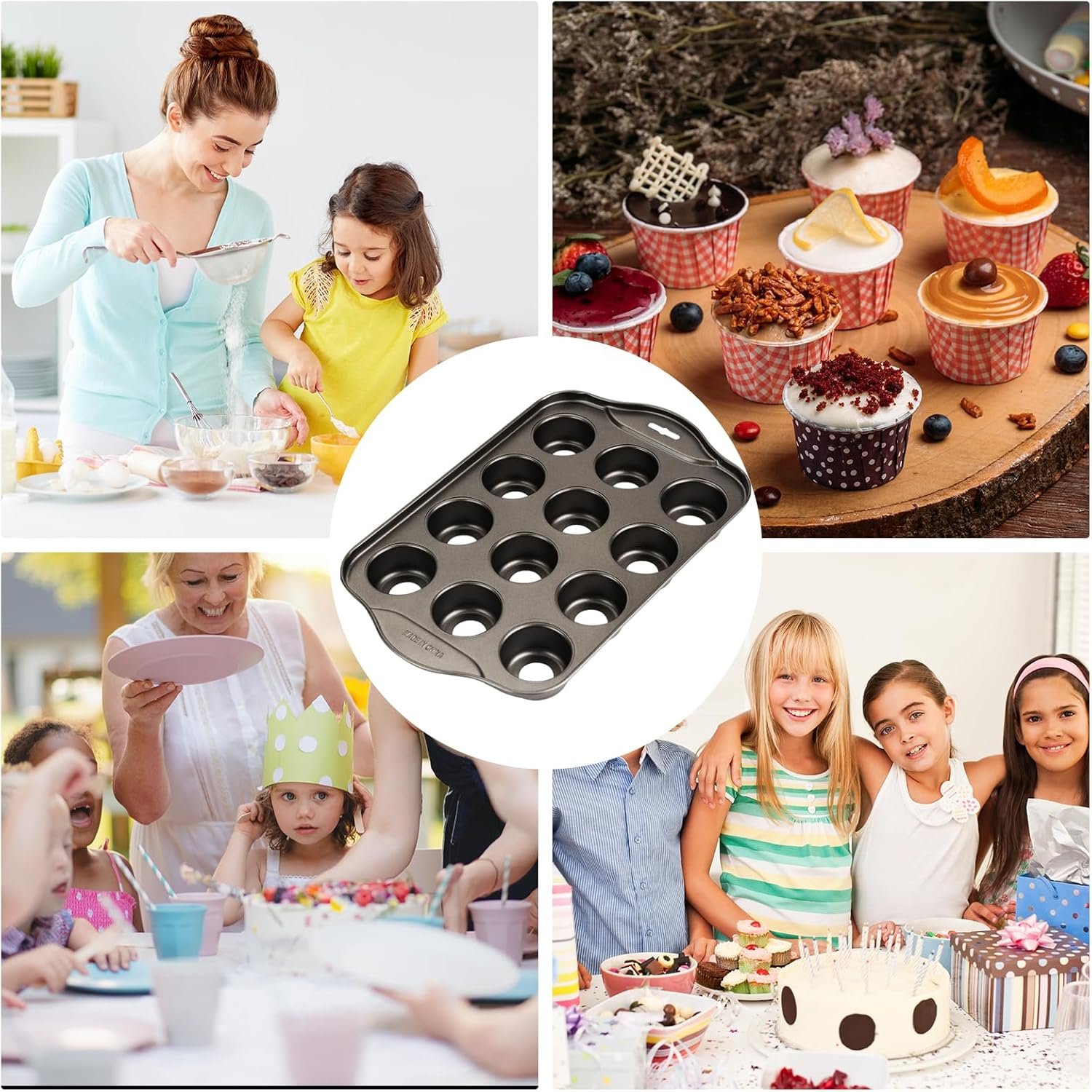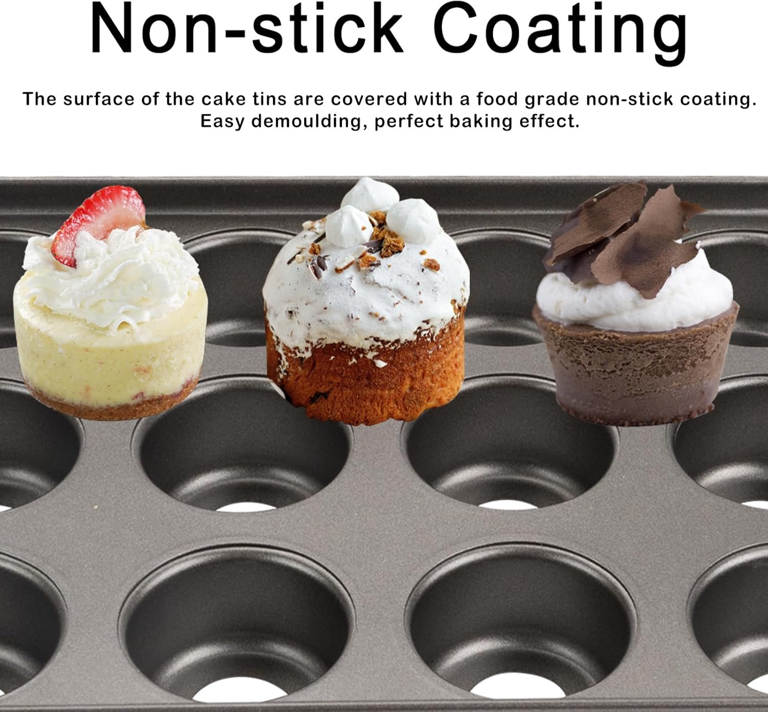 ?【Non-stick Coating】Cake tins is made of high quality carbon steel, sturdy and durable, uniform heating, not easy to deform. With food grade non-stick coating, easy to release, Teflon free, safe and non-toxic. When you make muffins and cupcakes for your family, the non-stick pan releases food easily and is easy to clean.