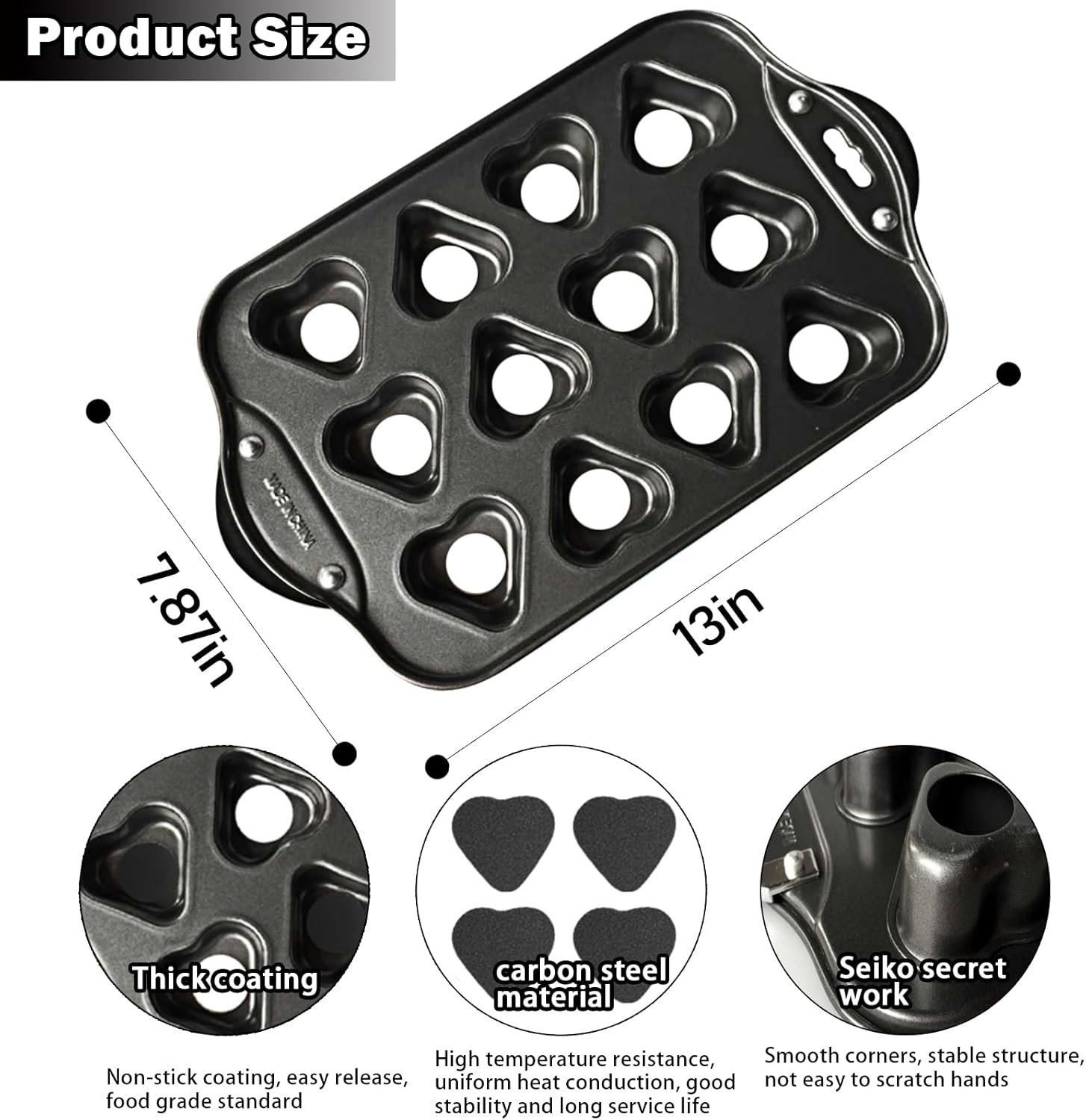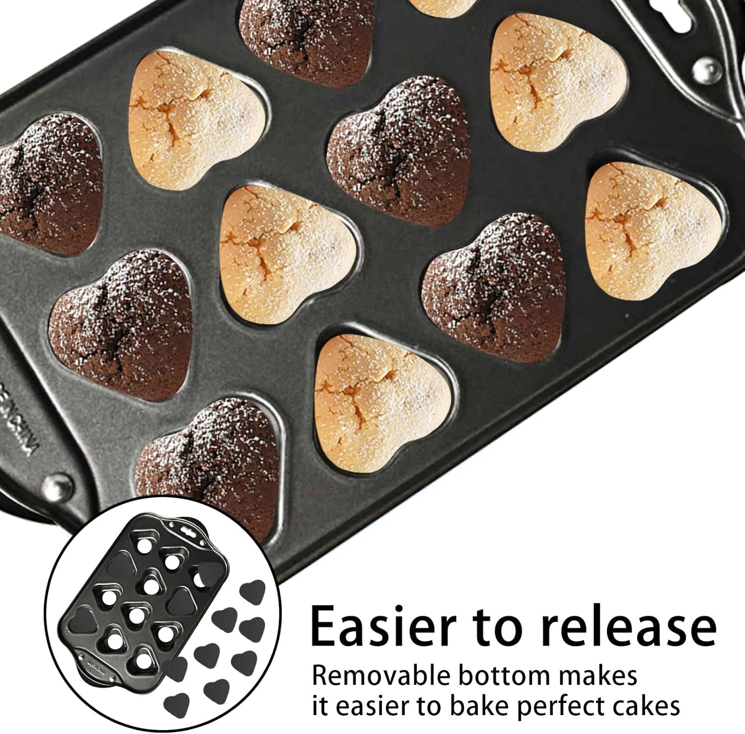 Premium Carbon Steel: Our cupcake pans are made of heavy-duty carbon steel that won't warp or warp. The thick carbon steel cheesecake pan ensures even heating and bakes high-quality cakes. Non-Stick Coating: The surface of this 12-cup muffin pan features a coating process. The protective coating helps ensure perfect food release, allowing your food to slide out easily.