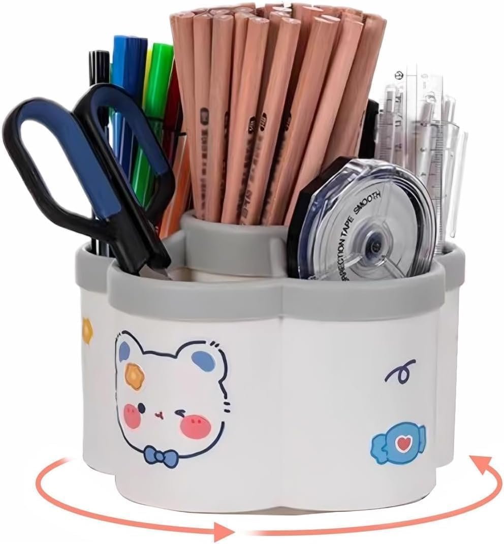 ❣ ???????? ??????:This 360 degree rotating pen box adopts creative design and can be rotated 360 degrees, making it easy for you to quickly find the stationery you need. comes with cute decorative pattern, making your desktop more fashionable and cute. ❣ ??? ????????: This cute rotating pen holder features a charming design fun stickers to add a touch of whimsy to your workspace and make your desk more organized.