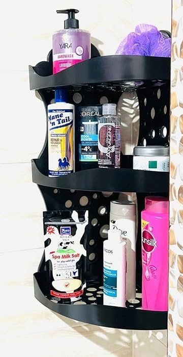 A corner for organizing toiletries used in the shower. It can withstand high water vapor temperatures. It does not rust and is equipped with screws to attach it to the wall