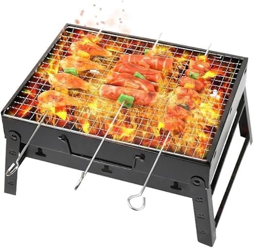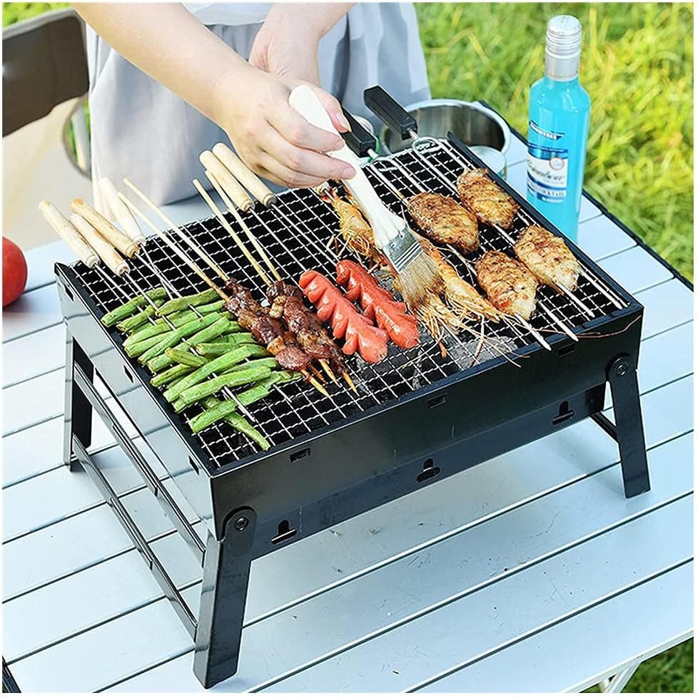 DURABLE & RELIABLE: The Folding BBQ Grill Grill Grill Is Made Of High Hardness Metal, Which Is Strong, Stable, And Resistant To High Temperature And Scratches, Ensuring That Can Be Used For A Long Time. Thick pull type baking mesh, more convenient to add charcoal. Ventilation Design: There are ventilation holes on both sides of the charcoal grill, allowing the air to fully rotate, effectively control the grill temperature and accelerate the charcoal burning, allowing to cook food faster. FOLDABLE DESIGN: Lightweight and compact outdoor foldable grill The grill also has a heat-resistant handle, which makes it very convenient to store and carry. EASY TO USE: No tools required, open the grill and install the grill. You can start cooking anytime, anywhere and easily enjoy outdoor grilling. Multipurpose: small size grill with unfolded dimension suitable for outdoor BBQ 3 to 5 people, very suitable for outdoor barbecue, picnics, camping, family party, beaches, car trips. You can cook a variety of meats, seafood and vegetables, allowing you to enjoy safe and healthy flavors even outdoors.