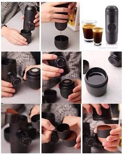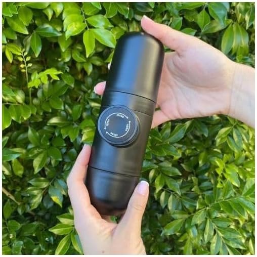 COMPACT DESIGN: Sleek, portable manual espresso maker perfect for travel or home use, featuring an all-black professional-grade construction