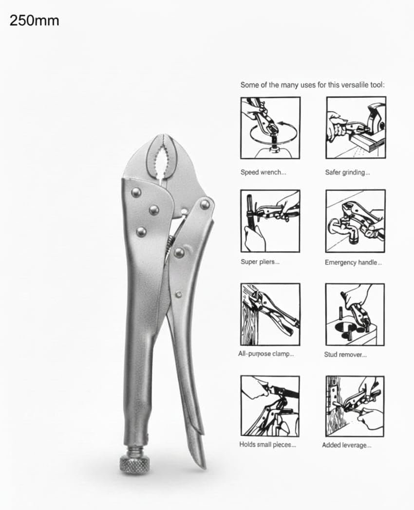 The Ultimate Tool for Jobs That Won't Budge. Stop struggling with stripped screws and slippery pipes. Our Heavy-Duty Locking Pliers are designed to provide a "death grip" on any material. Whether you are a professional tradesman or a weekend DIYer, this tool gives you the mechanical advantage you need to get the job done safely and efficiently.