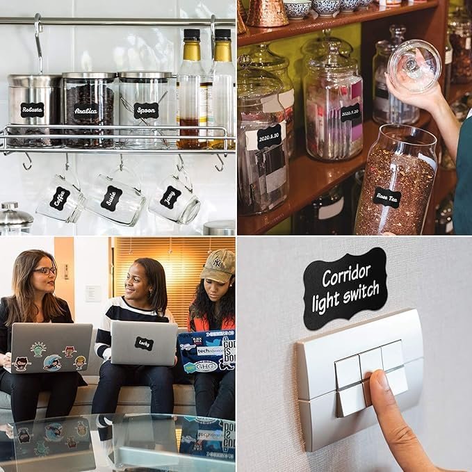 ?SPICE UP YOUR DIY DECORATIONS: Add a unique twist and the crowning touch to everything from graduation decorations to your next scrapbook. Use as glass bottle labels for eye-catching table numbers for wedding, or as decorative slate stickers for a standout dessert buffet. small and large chalkboard labels are a fun DIY project that let you easily personalize your party supplies.