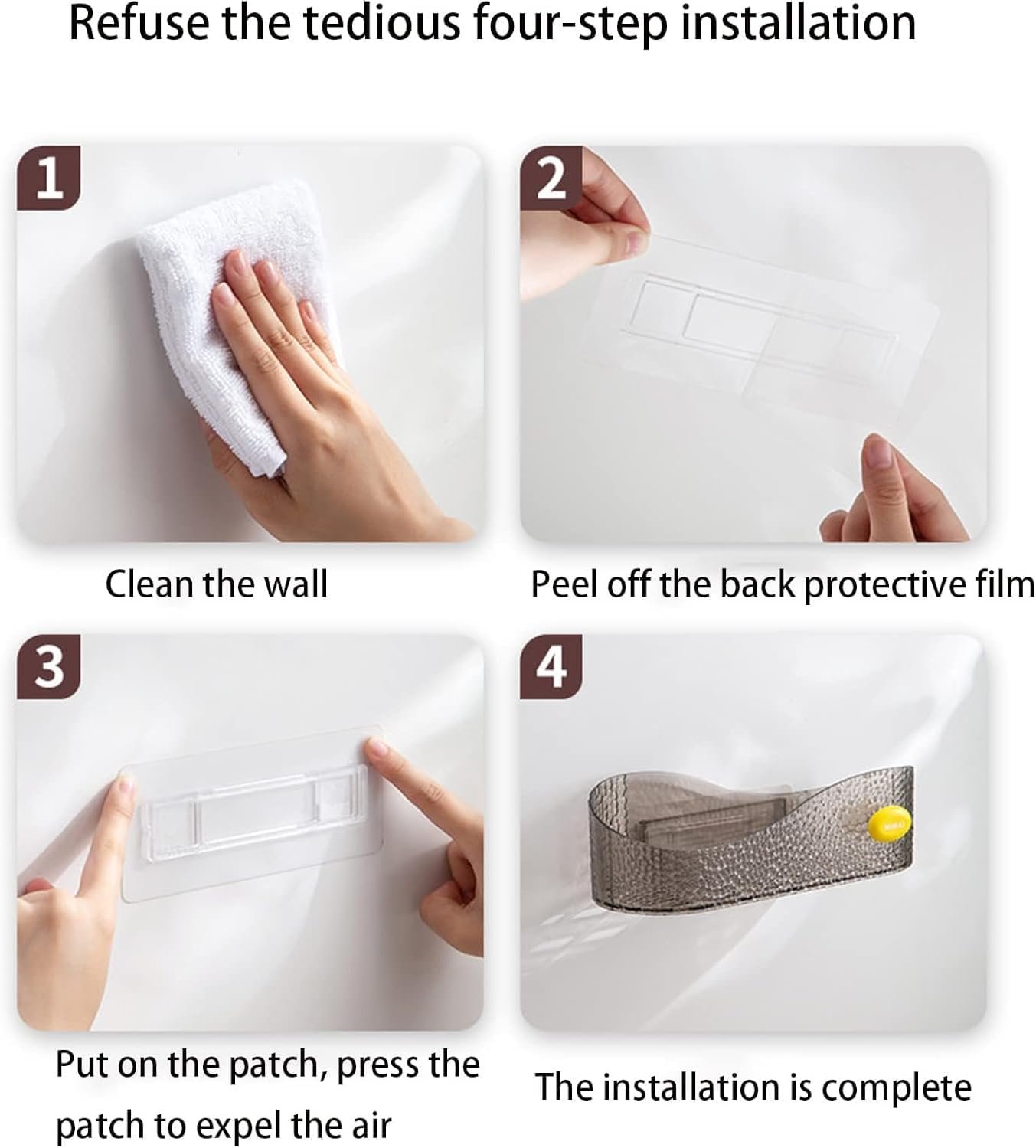 Bathroom Wall Organizer Easy to install No tools, no drilling, no punching, no damage to the wall, not easy to fall. It is also easy to disassemble.