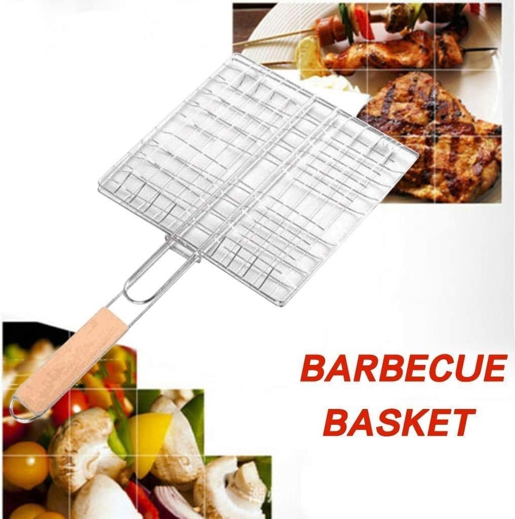 Stainless Steel Fish Grill Net network with Wooden Handle for Roast Fish Vegetable Shrimp Seafood (Small Size)(20x20xsquare)