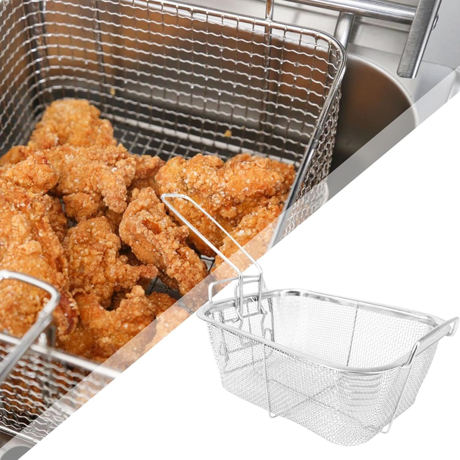 Safe for You Made of high-quality stainless steel, Fryer Basket is designed with ultra-fine mesh and catches splatters to keep hot oil, grease, boiling water, and food particles from splashing you and burning you Easy for Cleaning Fryer Basket is heat-resistant, non-stick, and quick to clean, dishwasher safe, removable splashback is easy to install and clean